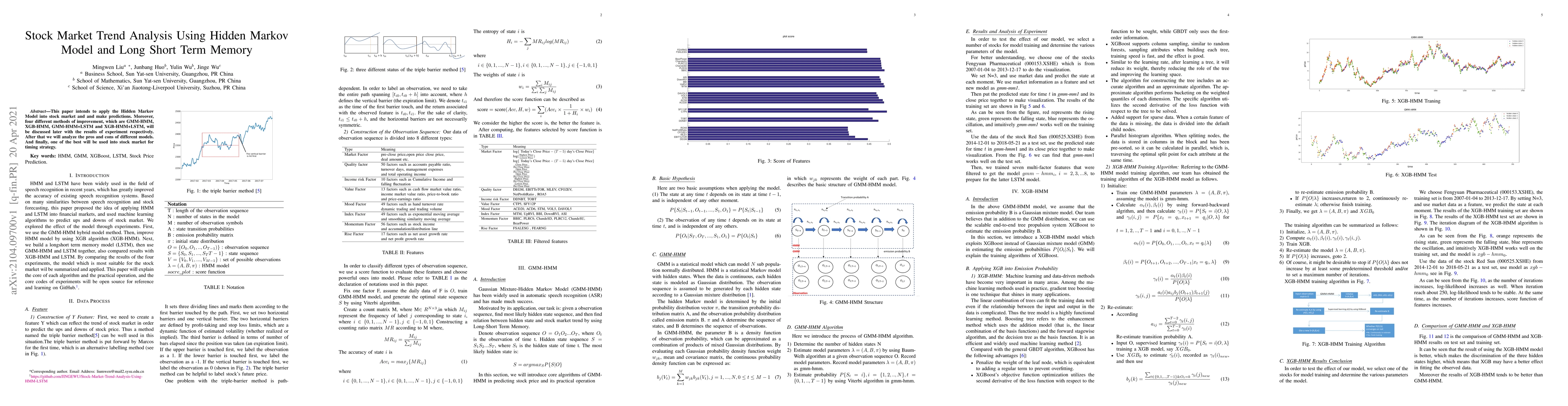 This paper intends to apply the Hidden Markov Model into stock market and and make predictions. Moreover, four different methods of improvement, which are GMM-HMM, XGB-HMM, GMM-HMM+LSTM and XGB-HMM+LSTM, will be discussed later with the results of experiment respectively. After that we will analyze the pros and cons of different models. And finally, one of the best will be used into stock market for timing strategy.