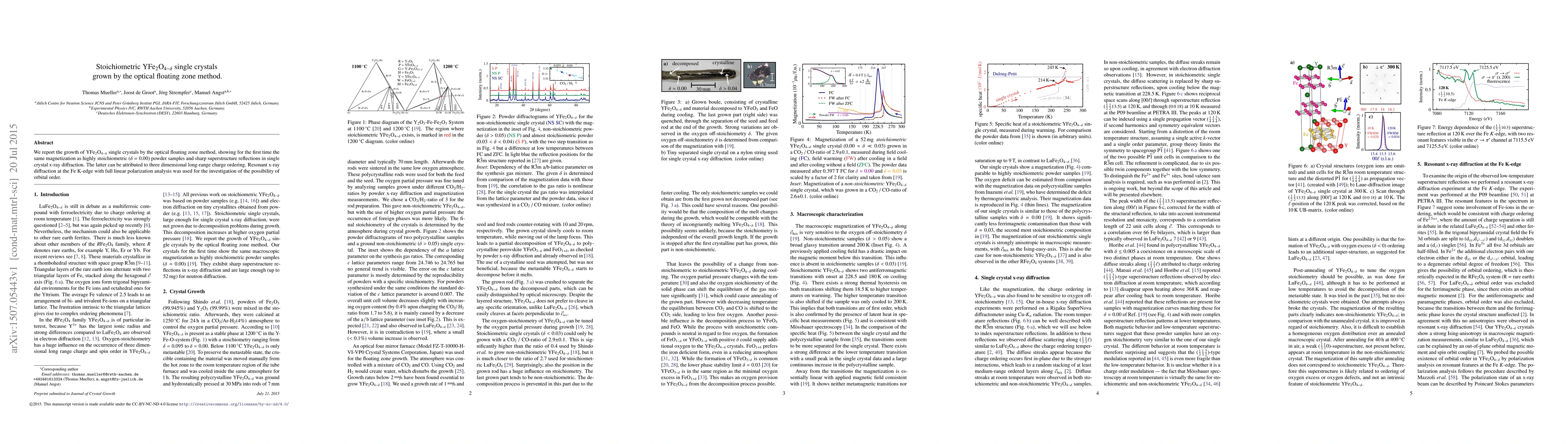 We report the growth of YFe2O4-\delta\ single crystals by the optical floating zone method, showing for the first time the same magnetization as highly stoichiometric (\delta = 0.00) powder samples and sharp superstructure reflections in single crystal x-ray diffraction. The latter can be attributed to three dimensional long-range charge ordering. Resonant x-ray diffraction at the Fe K-edge with full linear polarization analysis was used for the investigation of the possibility of orbital order.