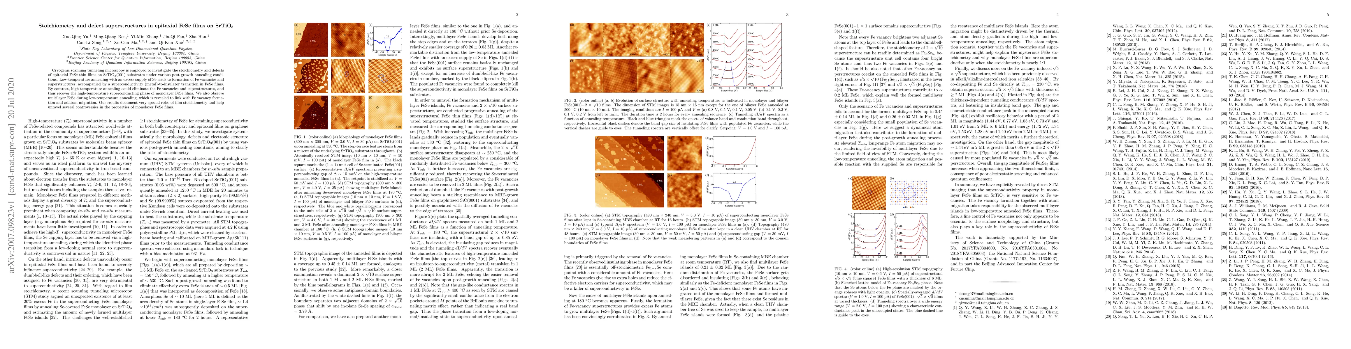 This study uses cryogenic scanning tunneling microscopy to explore how stoichiometry and defects in epitaxial FeSe films on SrTiO3 substrates vary with annealing conditions. Low-temperature annealing with excess Se creates Fe vacancies and superstructures, leading to a superconducting-to-insulating transition, while high-temperature annealing restores high-temperature superconductivity by eliminating these defects.
