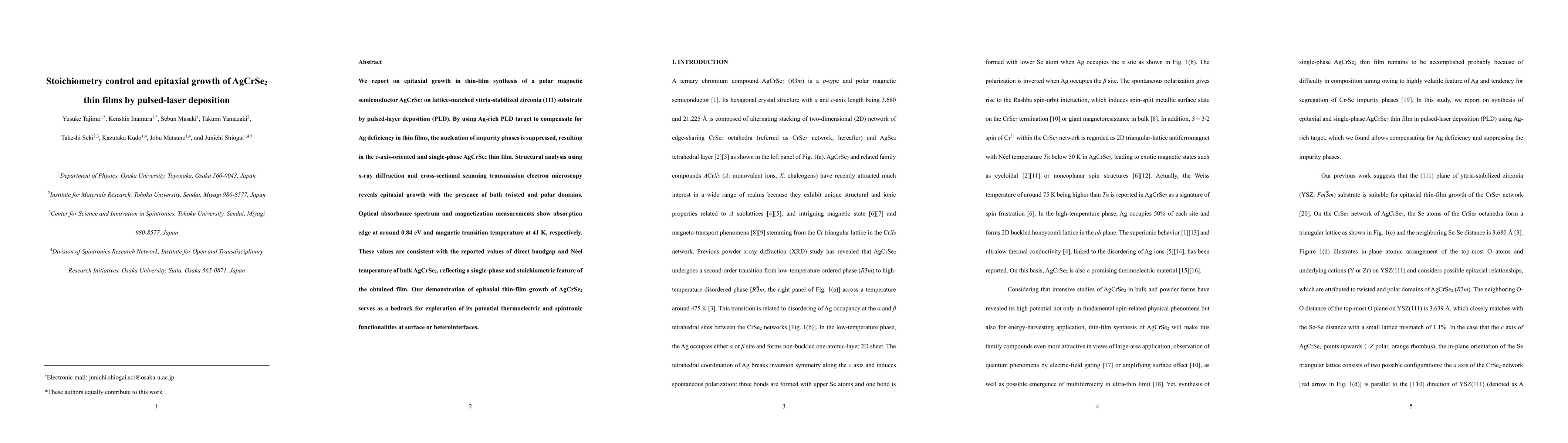 The paper presents a method for growing high-quality, stoichiometric AgCrSe2 thin films using PLD with an Ag-rich target, addressing Ag deficiency and suppressing impurity phases.