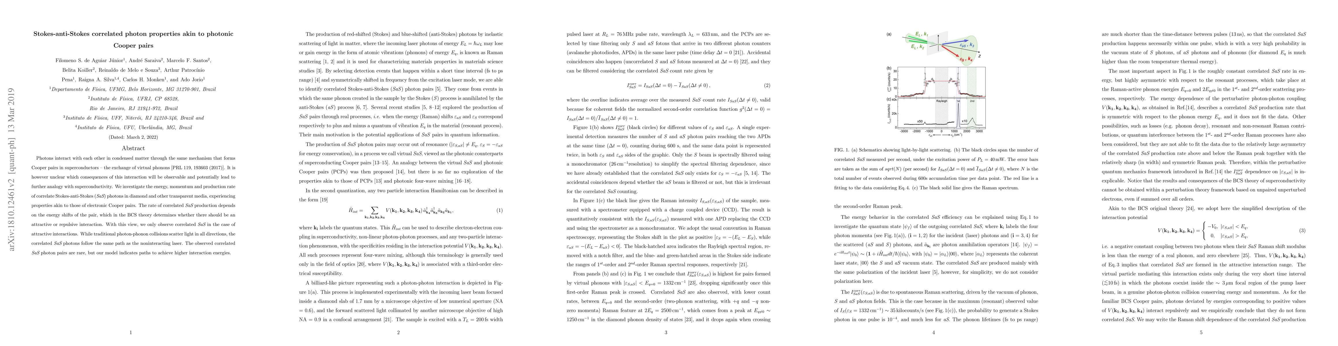 Photons interact with each other in condensed matter through the same mechanism that forms Cooper pairs in superconductors -- the exchange of virtual phonons [PRL 119, 193603 (2017)]. It is however unclear which consequences of this interaction will be observable and potentially lead to further analogy with superconductivity. We investigate the energy, momentum and production rate of correlate Stokes-anti-Stokes (SaS) photons in diamond and other transparent media, experiencing properties akin to those of electronic Cooper pairs. The rate of correlated SaS production depends on the energy shifts of the pair, which in the BCS theory determines whether there should be an attractive or repulsive interaction. With this view, we only observe correlated SaS in the case of attractive interactions. While traditional photon-phonon collisions scatter light in all directions, the correlated SaS photons follow the same path as the noninteracting laser. The observed correlated SaS photon pairs are rare, but our model indicates paths to achieve higher interaction energies.