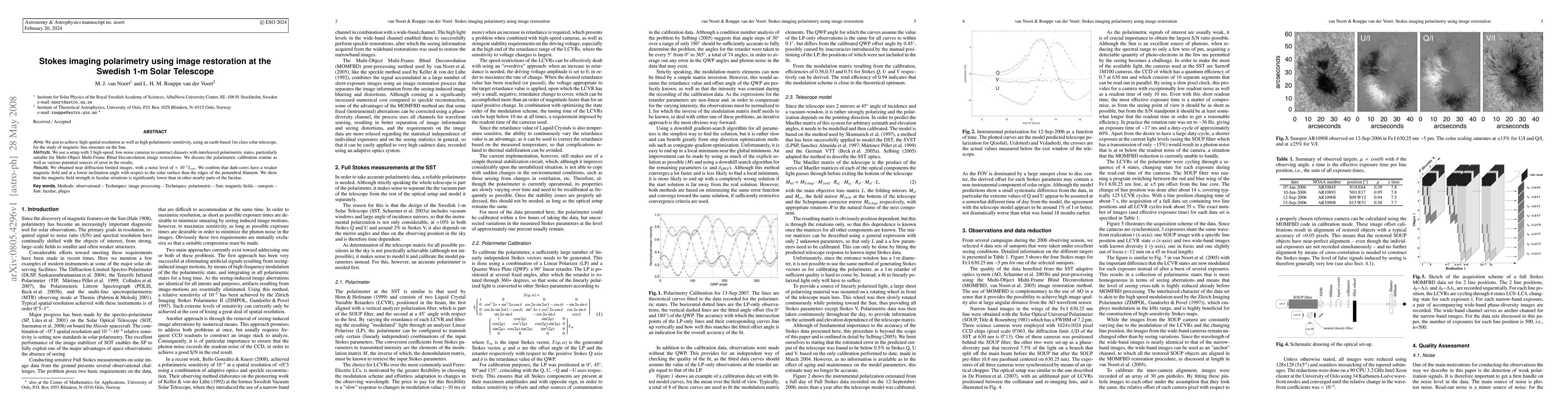 Aims: We aim to achieve high spatial resolution as well as high polarimetric sensitivity, using an earth-based 1m-class solar telescope, for the study of magnetic fine structure on the Sun. Methods: We use a setup with 3 high-speed, low-noise cameras to construct datasets with interleaved polarimetric states, particularly suitable for Multi-Object Multi-Frame Blind Deconvolution image restorations. We discuss the polarimetric calibration routine as well as various potential sources of error in the results. Results: We obtained near diffraction limited images, with a noise level of approximately 10^(-3) I(cont). We confirm that dark-cores have a weaker magnetic field and at a lower inclination angle with respect to the solar surface than the edges of the penumbral filament. We show that the magnetic field strength in faculae-striations is significantly lower than in other nearby parts of the faculae.