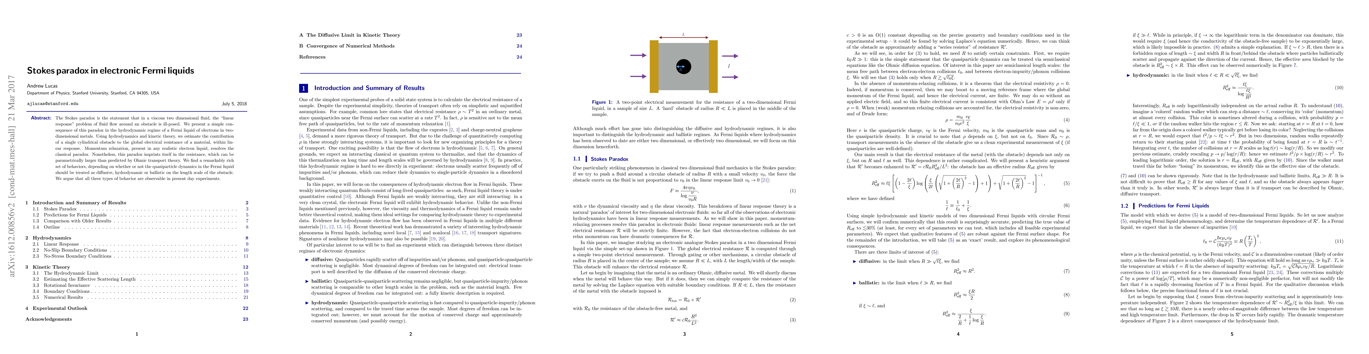The Stokes paradox is the statement that in a viscous two dimensional fluid, the "linear response" problem of fluid flow around an obstacle is ill-posed. We present a simple consequence of this paradox in the hydrodynamic regime of a Fermi liquid of electrons in two-dimensional metals. Using hydrodynamics and kinetic theory, we estimate the contribution of a single cylindrical obstacle to the global electrical resistance of a material, within linear response. Momentum relaxation, present in any realistic electron liquid, resolves the classical paradox. Nonetheless, this paradox imprints itself in the resistance, which can be parametrically larger than predicted by Ohmic transport theory. We find a remarkably rich set of behaviors, depending on whether or not the quasiparticle dynamics in the Fermi liquid should be treated as diffusive, hydrodynamic or ballistic on the length scale of the obstacle. We argue that all three types of behavior are observable in present day experiments.