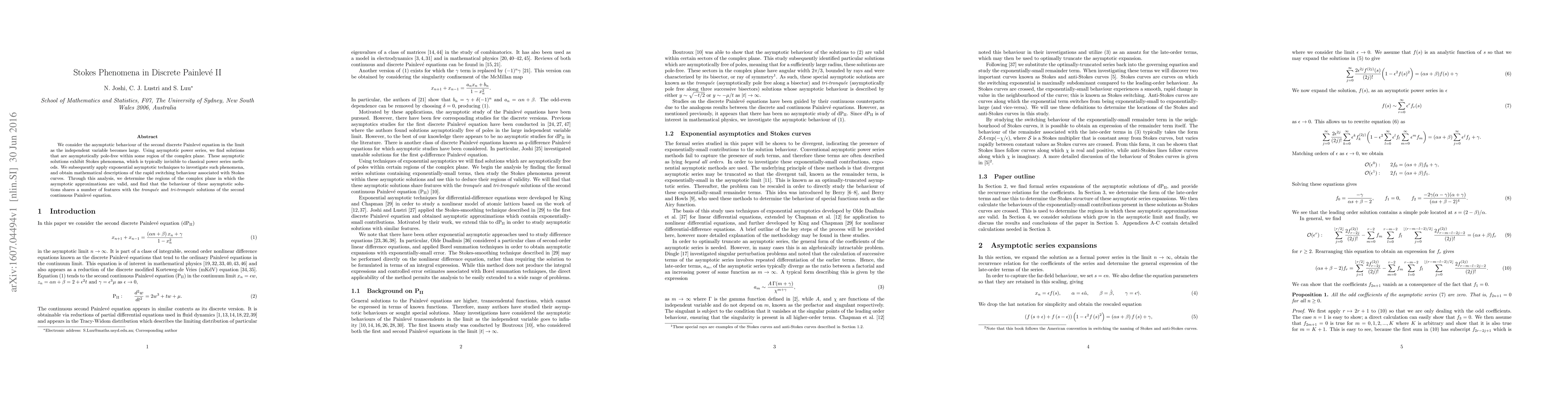 This paper investigates the asymptotic behavior of the second discrete Painlevé equation, revealing pole-free solutions that display Stokes phenomena. The study employs exponential asymptotic techniques to describe the rapid switching behavior along Stokes curves, identifying regions where the asymptotic approximations hold valid and comparing these with solutions from the continuous Painlevé equation.