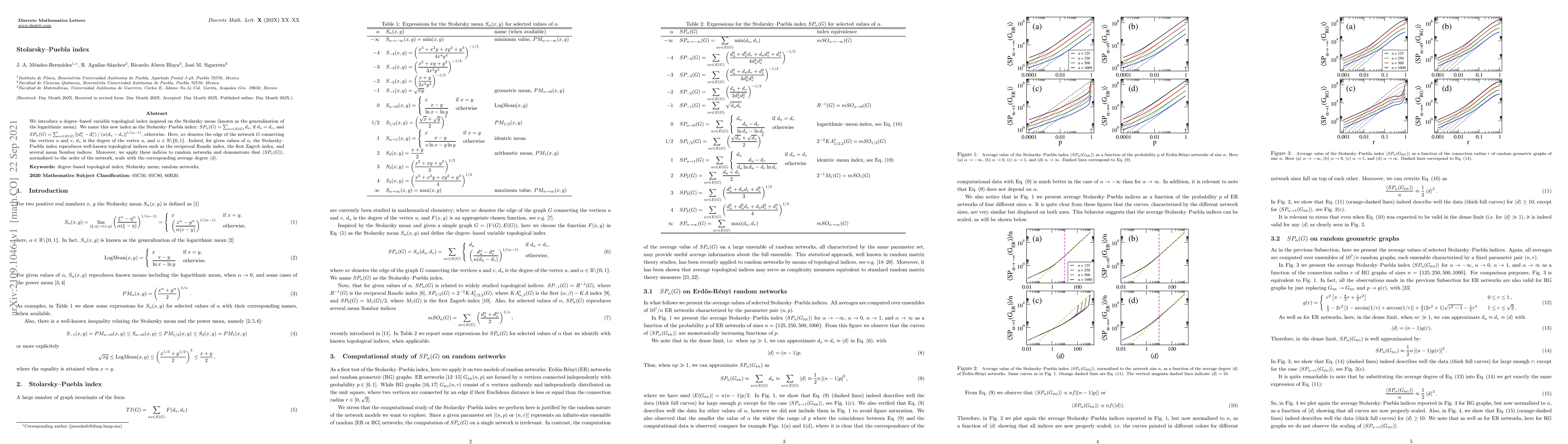 The Stolarsky-Puebla index is a new degree-based variable topological index inspired by the Stolarsky mean, which generalizes the logarithmic mean. It reproduces several well-known indices and scales with the average degree in random networks.