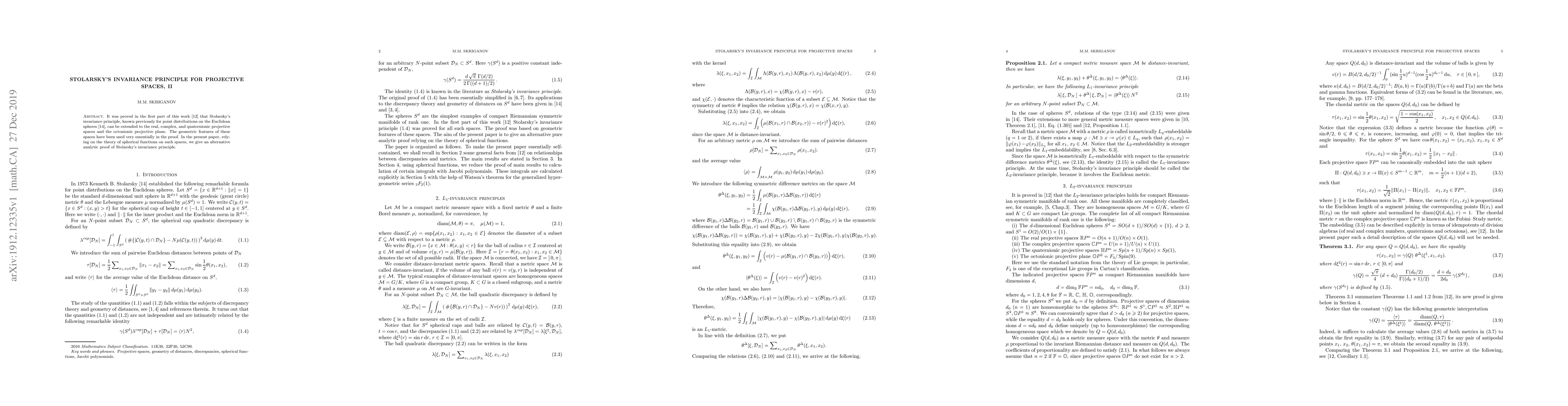 This paper extends Stolarsky's invariance principle to real, complex, quaternionic projective spaces, and the octonionic projective plane using the theory of spherical functions, providing an alternative analytic proof to the geometric proof presented in the first part.