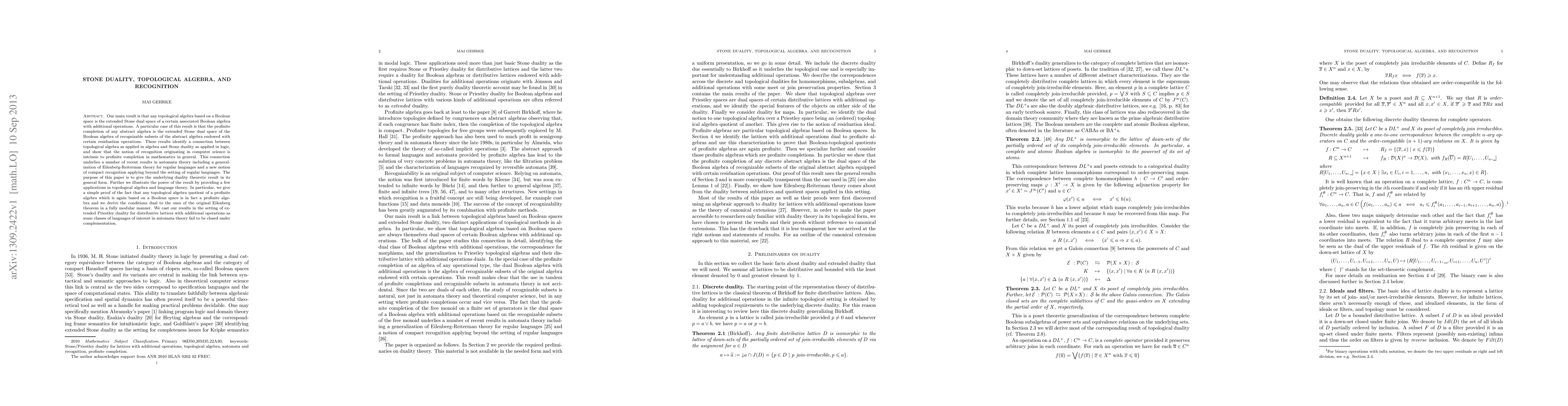 This paper establishes a duality between topological algebras based on Boolean spaces and extended Stone dual spaces of associated Boolean algebras, revealing that the notion of recognition in computer science is intrinsic to profinite completion in mathematics. It also provides applications in topological algebra and automata theory, including a proof of the profinite nature of certain quotient algebras and a new modular generalization of the Eilenberg theorem.