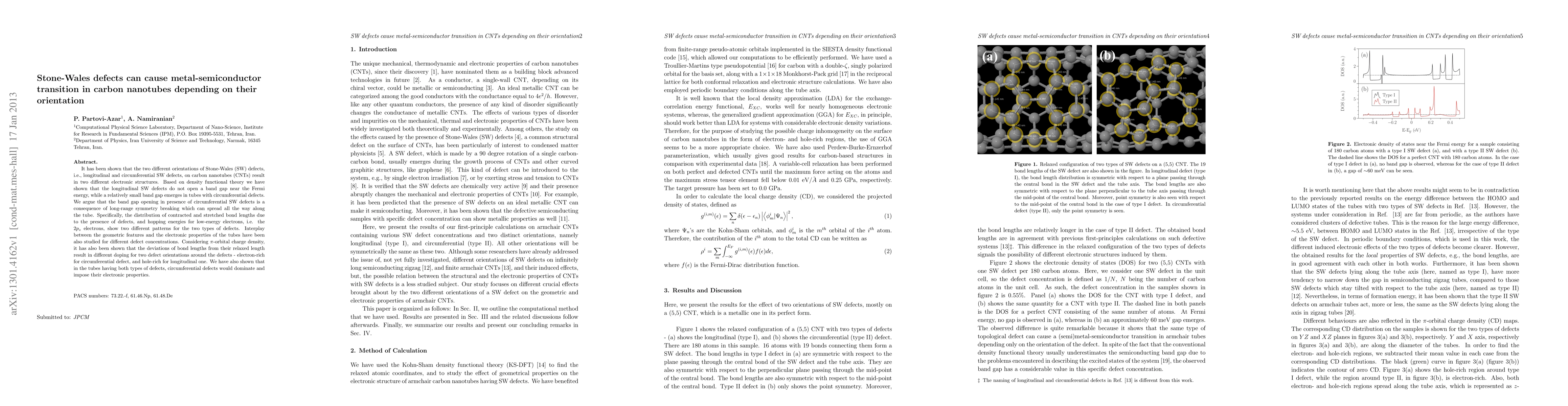 Researchers found that Stone-Wales defects in carbon nanotubes can cause a metal-semiconductor transition depending on their orientation, with circumferential defects leading to a small bandgap and longitudinal defects being non-conductive.