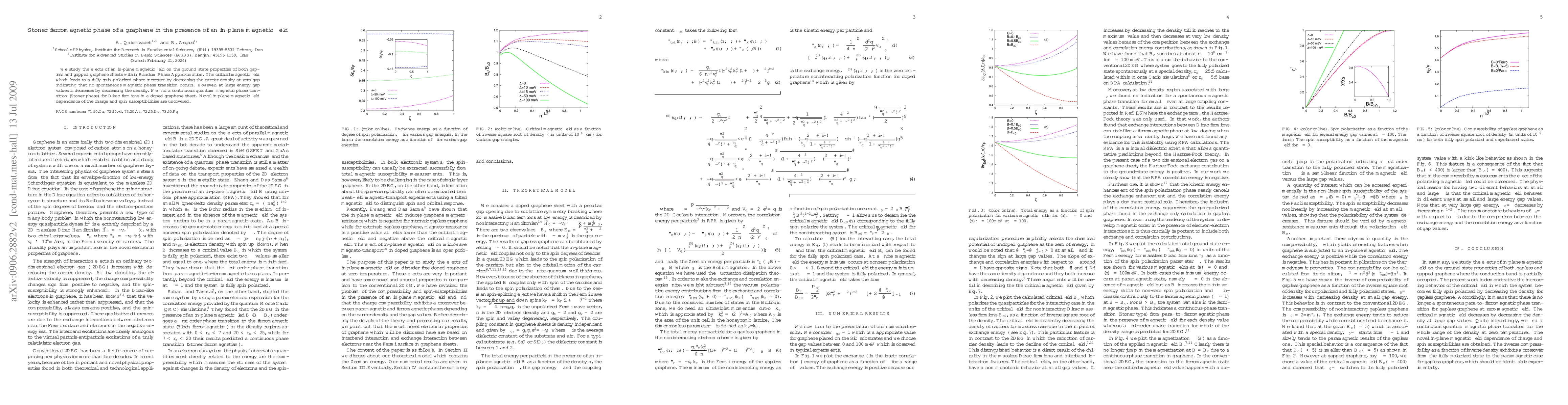 The study investigates how an in-plane magnetic field influences the ferromagnetic phase of graphene, showing that a fully spin-polarized phase emerges at lower carrier densities but not spontaneously. It reveals a continuous quantum phase transition for doped graphene and identifies unique dependencies of charge and spin susceptibilities on the magnetic field.