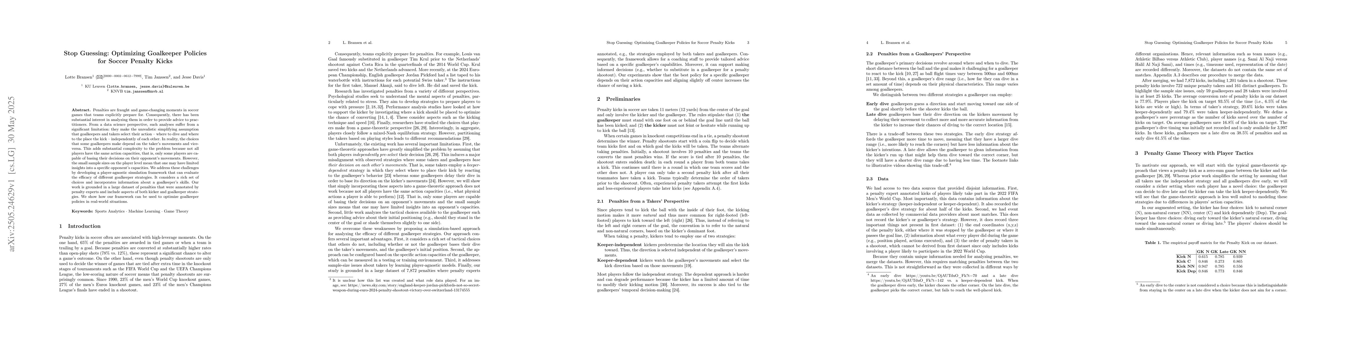 Penalties are fraught and game-changing moments in soccer games that teams explicitly prepare for. Consequently, there has been substantial interest in analyzing them in order to provide advice to practitioners. From a data science perspective, such analyses suffer from a significant limitation: they make the unrealistic simplifying assumption that goalkeepers and takers select their action -- where to dive and where to the place the kick -- independently of each other. In reality, the choices that some goalkeepers make depend on the taker's movements and vice-versa. This adds substantial complexity to the problem because not all players have the same action capacities, that is, only some players are capable of basing their decisions on their opponent's movements. However, the small sample sizes on the player level mean that one may have limited insights into a specific opponent's capacities. We address these challenges by developing a player-agnostic simulation framework that can evaluate the efficacy of different goalkeeper strategies. It considers a rich set of choices and incorporates information about a goalkeeper's skills. Our work is grounded in a large dataset of penalties that were annotated by penalty experts and include aspects of both kicker and goalkeeper strategies. We show how our framework can be used to optimize goalkeeper policies in real-world situations.