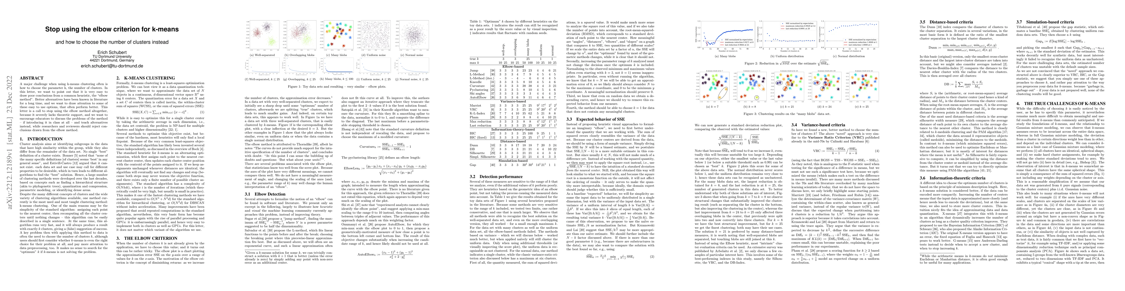 This paper argues against using the "elbow method" for determining the number of clusters in k-means clustering due to its lack of theoretical support. It recommends exploring better alternatives that have been available in the literature for a long time and encourages educators to teach these alternatives instead.