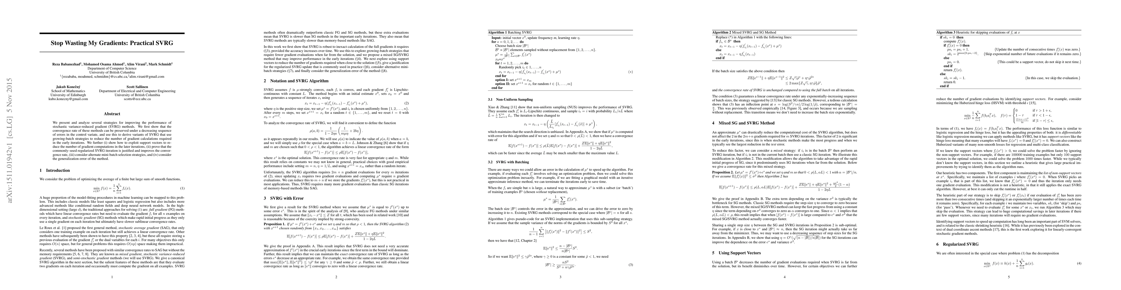 We present and analyze several strategies for improving the performance of stochastic variance-reduced gradient (SVRG) methods. We first show that the convergence rate of these methods can be preserved under a decreasing sequence of errors in the control variate, and use this to derive variants of SVRG that use growing-batch strategies to reduce the number of gradient calculations required in the early iterations. We further (i) show how to exploit support vectors to reduce the number of gradient computations in the later iterations, (ii) prove that the commonly-used regularized SVRG iteration is justified and improves the convergence rate, (iii) consider alternate mini-batch selection strategies, and (iv) consider the generalization error of the method.
