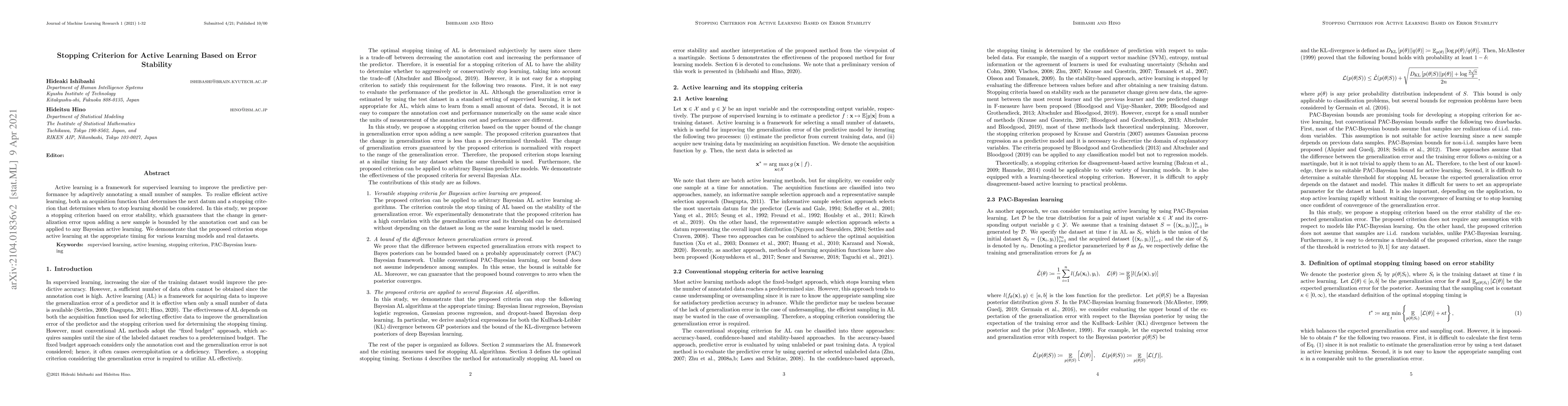 This paper proposes a stopping criterion for active learning based on error stability, ensuring that the change in generalization error is bounded by annotation cost. The criterion effectively determines the optimal time to stop learning for various models and datasets.