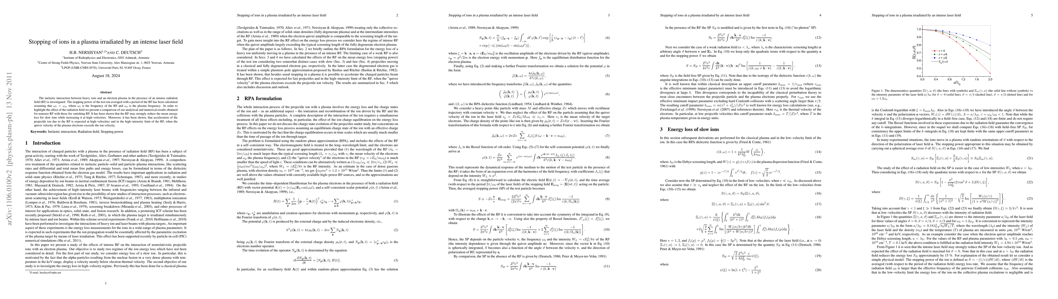 This paper investigates the interaction between heavy ions and an electron plasma under intense laser radiation, calculating the stopping power of ions in the presence of a strong radiation field. The results show that the radiation field can significantly alter the mean energy loss, reducing it for slow ions and increasing it for fast ones, with high-intensity fields potentially accelerating the projectile ions.