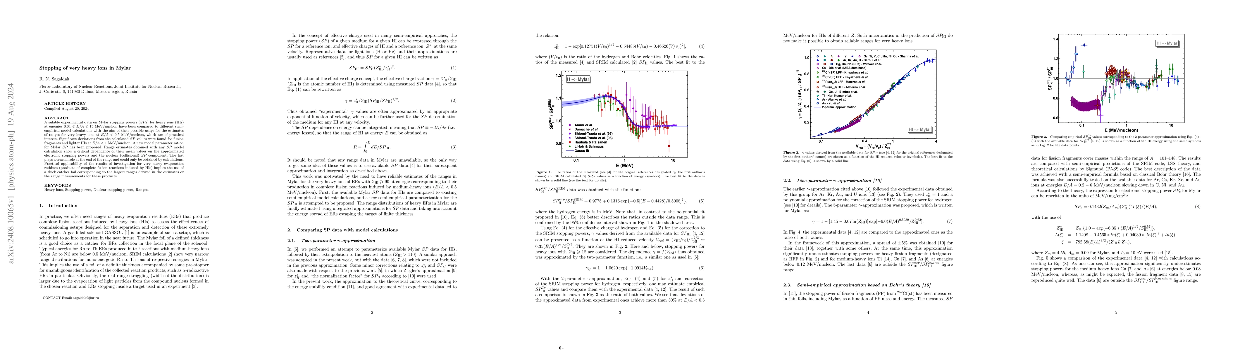 This research compares experimental data on Mylar stopping powers for heavy ions with semi-empirical models, identifying significant deviations for lighter ions at low energies. A new model parameterization is proposed, emphasizing the critical role of nuclear stopping power in range estimates for very heavy ions.