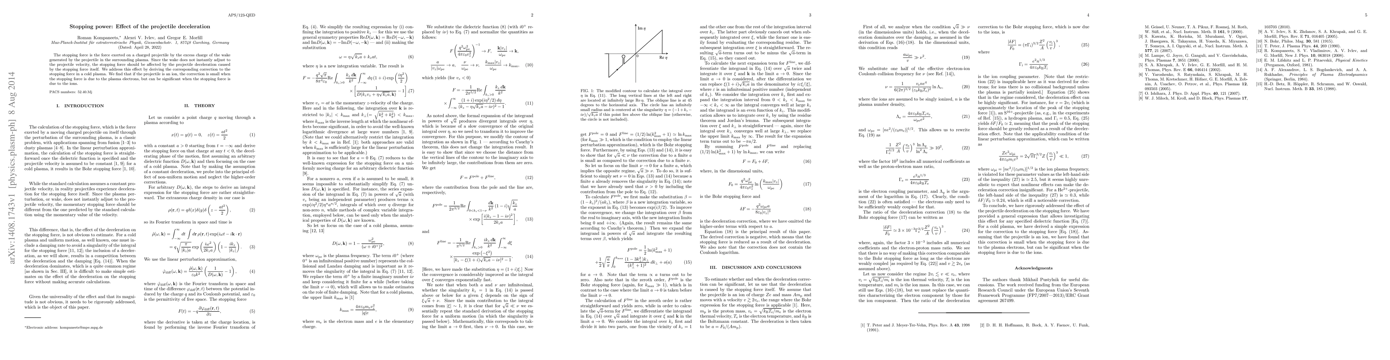 This paper investigates the deceleration effect on the stopping force exerted on a charged projectile in plasma, deriving a correction for the stopping force in a cold plasma. The correction is minor when the force is due to electrons but can be significant when it is due to ions.