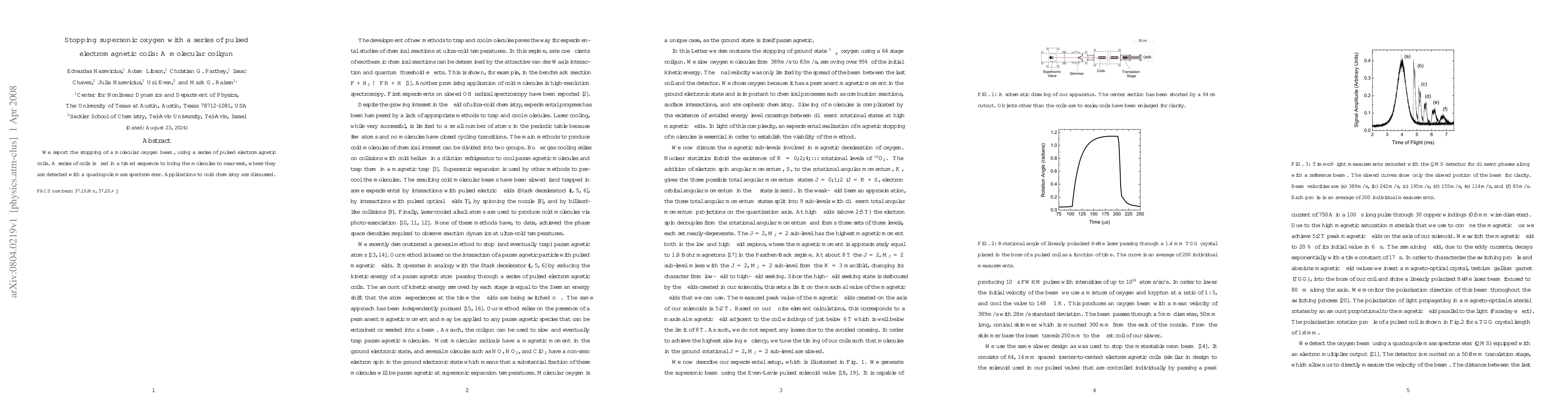 This paper details the successful deceleration of a supersonic oxygen beam using a sequence of pulsed electromagnetic coils, achieving near-rest detection via a quadrupole mass spectrometer, with potential implications for cold chemistry applications.