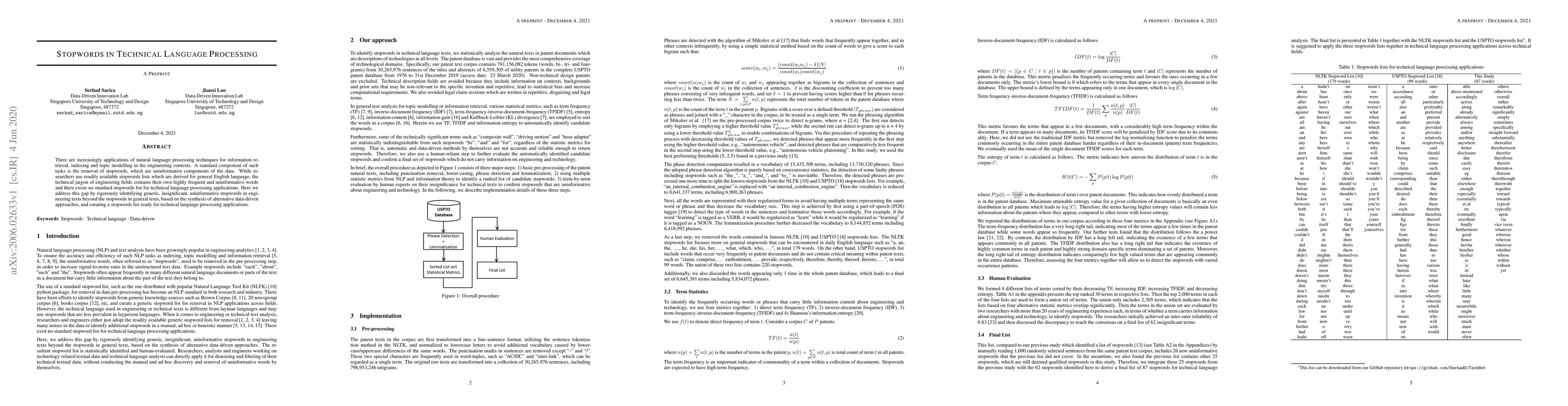 This paper identifies and curates a specialized stopword list for technical language processing in engineering contexts, addressing the lack of a standard list for engineering jargon by synthesizing alternative data-driven approaches. The resulting list aims to enhance information retrieval, indexing, and topic modelling in technical fields.