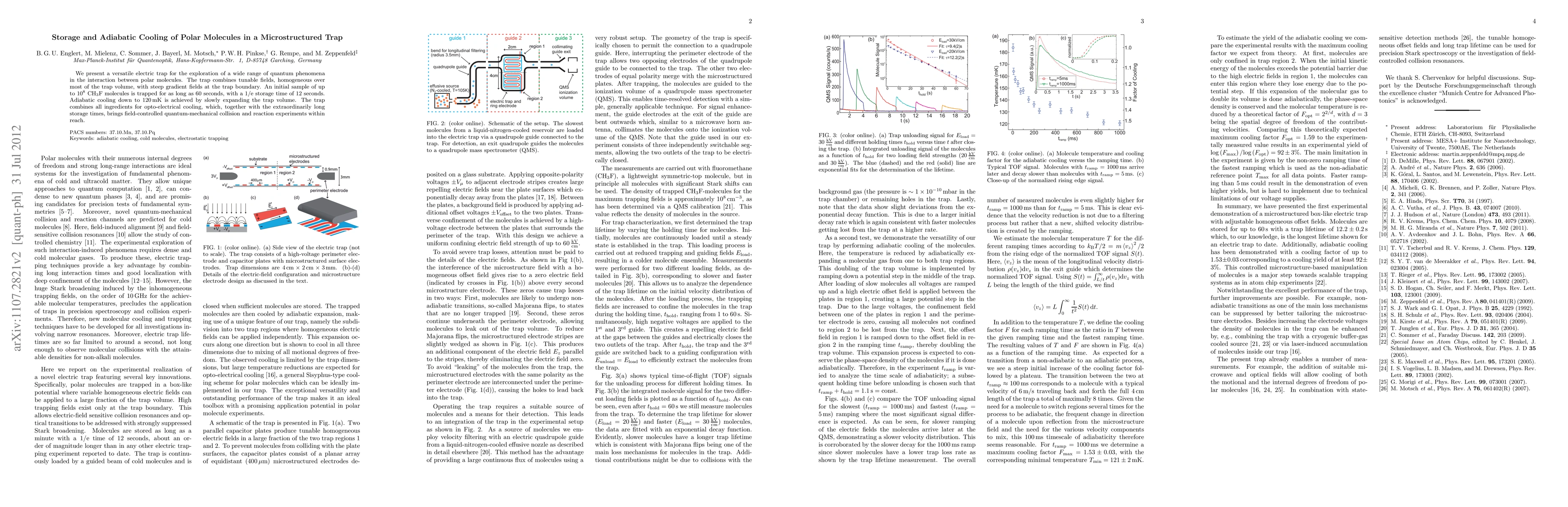 This paper details a versatile electric trap for polar molecules, specifically CH3F, capable of holding up to 10^8 molecules for up to 60 seconds. The trap enables adiabatic cooling to 120 mK, paving the way for field-controlled quantum-mechanical experiments.