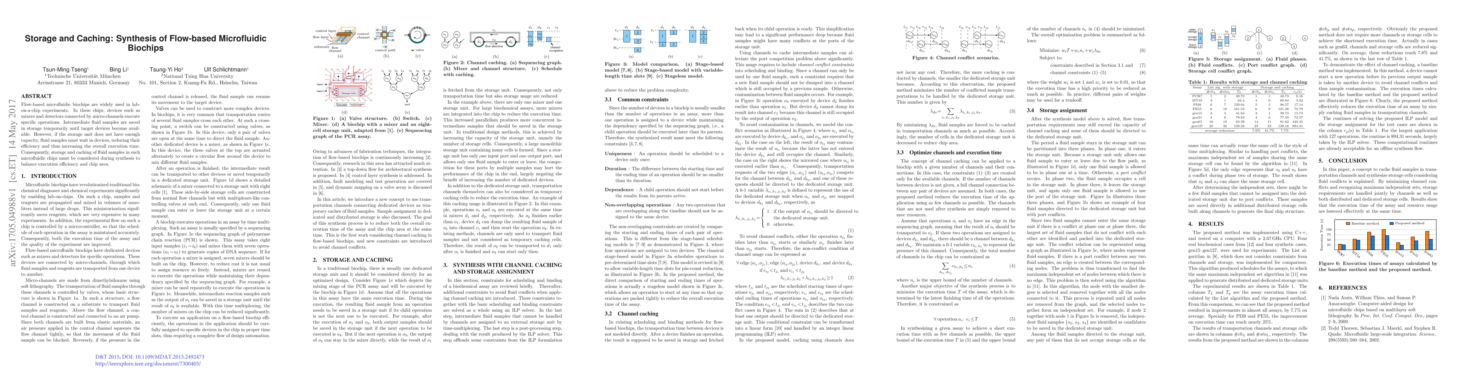 This paper explores the synthesis of flow-based microfluidic biochips, emphasizing the importance of efficient storage and caching of intermediate fluid samples to balance execution efficiency and chip area while minimizing delays in lab-on-a-chip experiments.