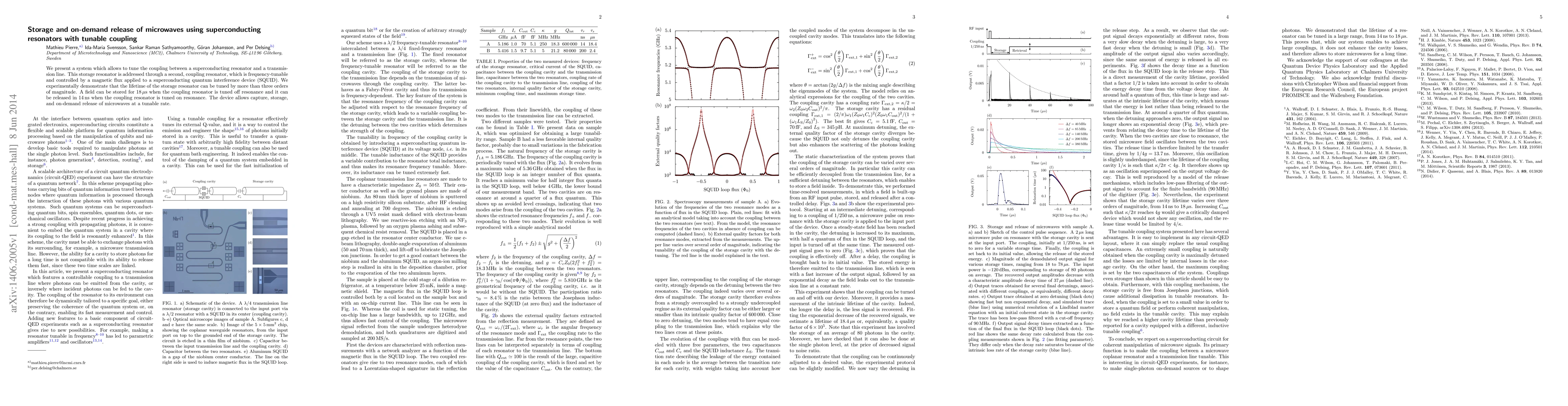 This paper describes a system for storing and releasing microwaves using superconducting resonators with tunable coupling, demonstrating a tunable lifetime of the storage resonator over three orders of magnitude. The system enables on-demand release of stored microwaves in 14 ns by tuning the coupling resonator.