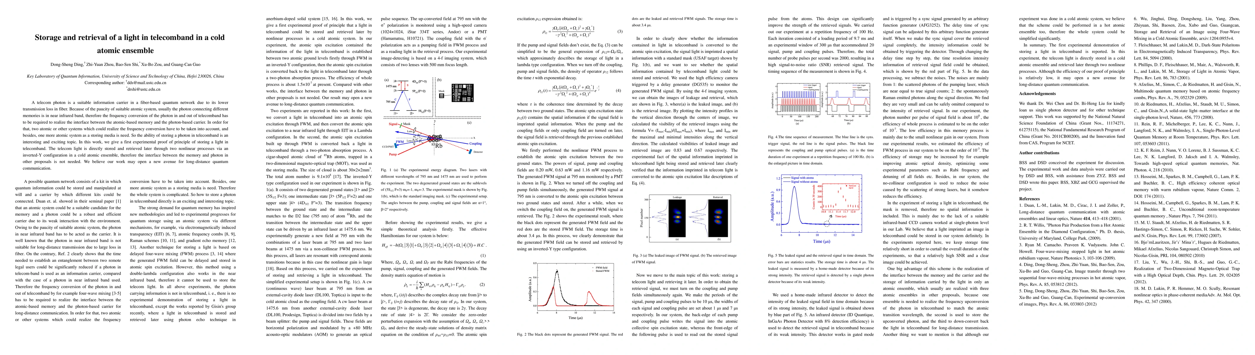 This paper presents the first experimental proof of storing and retrieving a telecom photon directly in a cold atomic ensemble using nonlinear processes in an inverted-Y configuration, eliminating the need for frequency conversion interfaces. This advancement may pave the way for long-distance quantum communication.
