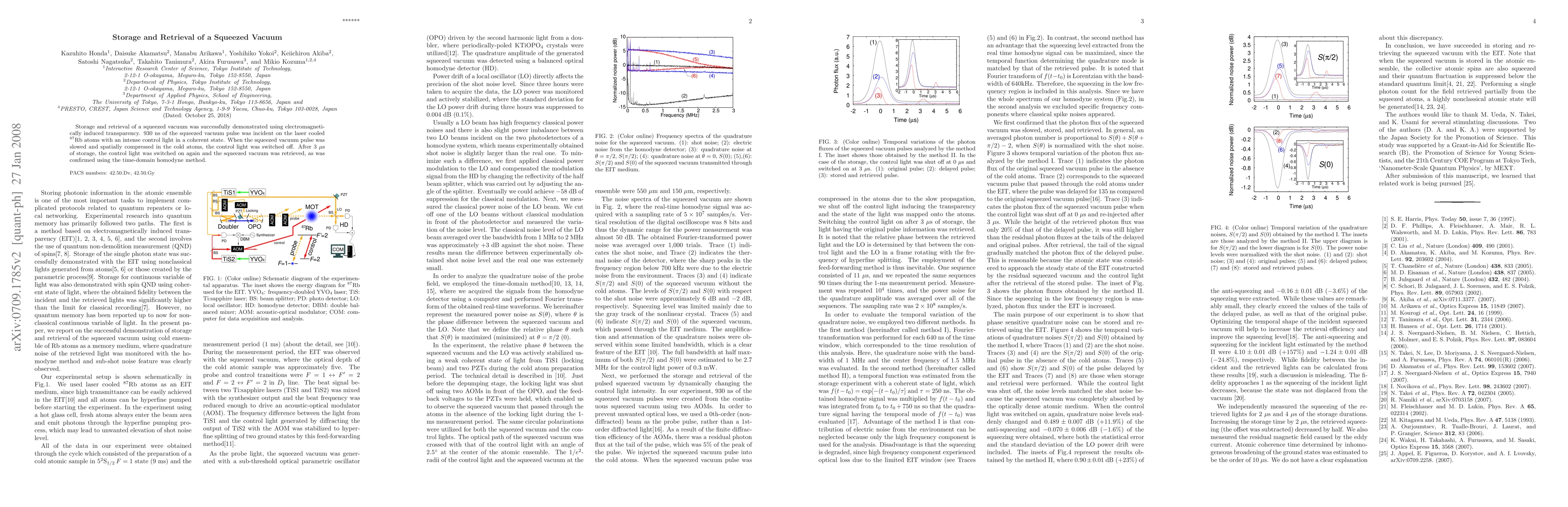 This research demonstrates the storage and retrieval of a squeezed vacuum using electromagnetically induced transparency with 87Rb atoms, successfully preserving the squeezed state for 3 microseconds before accurately retrieving it. The process was validated using the time-domain homodyne method.