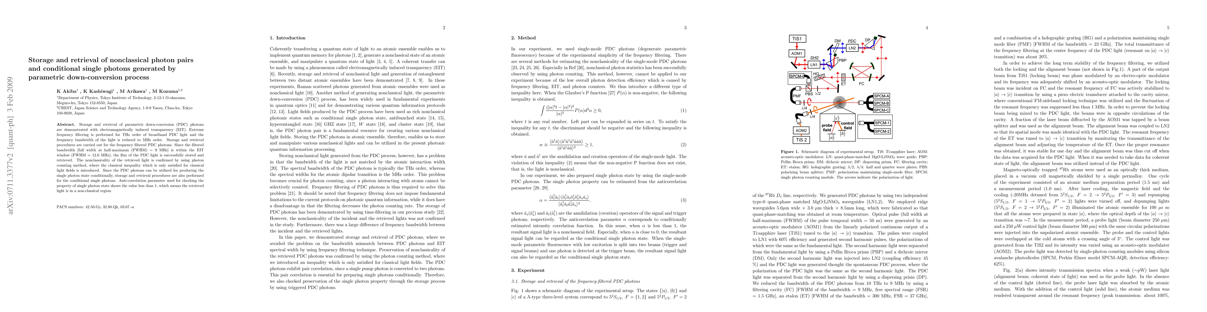 This paper demonstrates storage and retrieval of nonclassical photon pairs generated via parametric down-conversion, utilizing electromagnetically induced transparency (EIT) for frequency filtering. The retrieved light maintains its nonclassical properties, confirmed by photon counting methods, and conditional single photons are also successfully stored and retrieved.