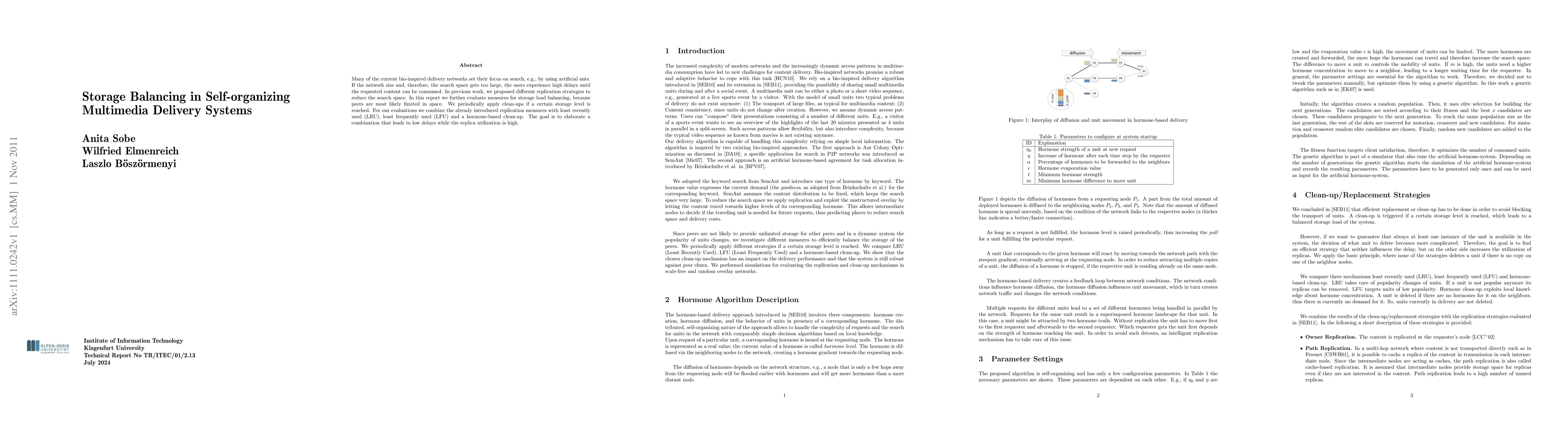 Many of the current bio-inspired delivery networks set their focus on search, e.g., by using artificial ants. If the network size and, therefore, the search space gets too large, the users experience high delays until the requested content can be consumed. In previous work, we proposed different replication strategies to reduce the search space. In this report we further evaluate measures for storage load balancing, because peers are most likely limited in space. We periodically apply clean-ups if a certain storage level is reached. For our evaluations we combine the already introduced replication measures with least recently used (LRU), least frequently used (LFU) and a hormone-based clean-up. The goal is to elaborate a combination that leads to low delays while the replica utilization is high.