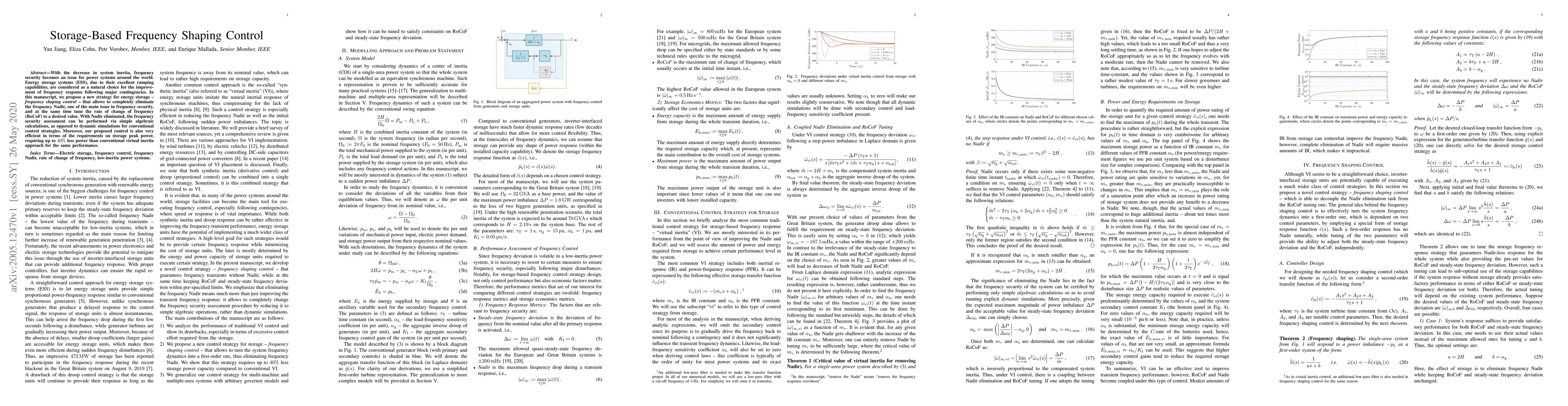 This paper proposes a novel frequency shaping control strategy for energy storage systems to improve frequency response in power systems with low inertia. The strategy eliminates the frequency nadir and tunes the rate of change of frequency, requiring up to 40% less peak power compared to conventional virtual inertia methods.