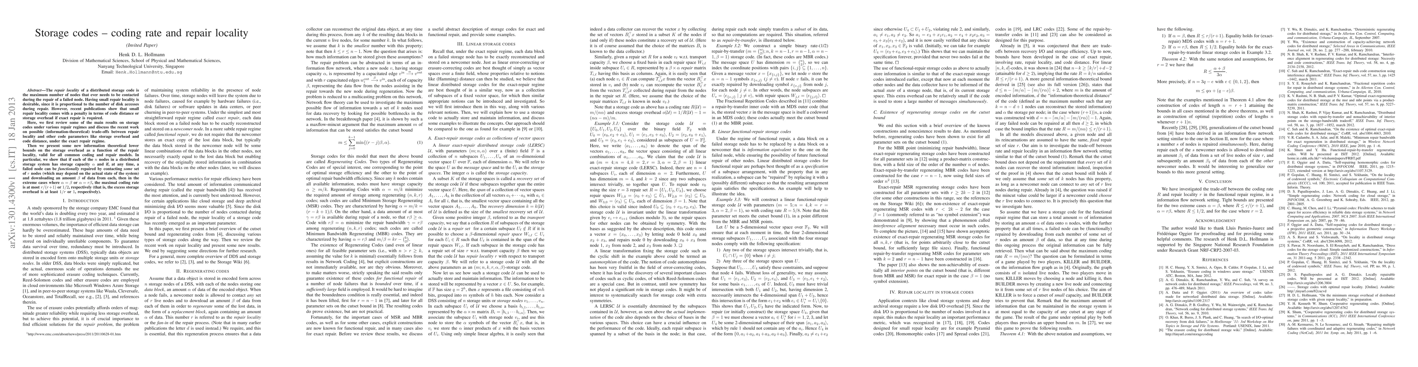 The {\em repair locality} of a distributed storage code is the maximum number of nodes that ever needs to be contacted during the repair of a failed node. Having small repair locality is desirable, since it is proportional to the number of disk accesses during repair. However, recent publications show that small repair locality comes with a penalty in terms of code distance or storage overhead if exact repair is required. Here, we first review some of the main results on storage codes under various repair regimes and discuss the recent work on possible (information-theoretical) trade-offs between repair locality and other code parameters like storage overhead and code distance, under the exact repair regime. Then we present some new information theoretical lower bounds on the storage overhead as a function of the repair locality, valid for all common coding and repair models. In particular, we show that if each of the $n$ nodes in a distributed storage system has storage capacity $\ga$ and if, at any time, a failed node can be {\em functionally} repaired by contacting {\em some} set of $r$ nodes (which may depend on the actual state of the system) and downloading an amount $\gb$ of data from each, then in the extreme cases where $\ga=\gb$ or $\ga = r\gb$, the maximal coding rate is at most $r/(r+1)$ or 1/2, respectively (that is, the excess storage overhead is at least $1/r$ or 1, respectively).