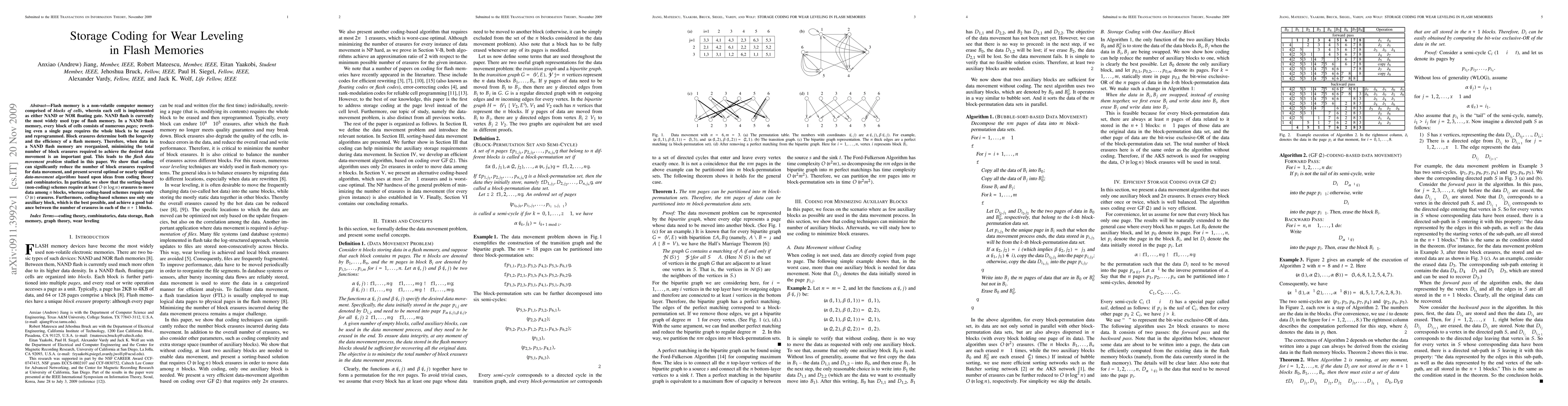 This paper investigates coding techniques to minimize block erasures in NAND flash memory for efficient data movement, demonstrating that coding-based schemes require only O(n) erasures compared to O(nlogn) for non-coding methods, achieving optimal use of a single auxiliary block.