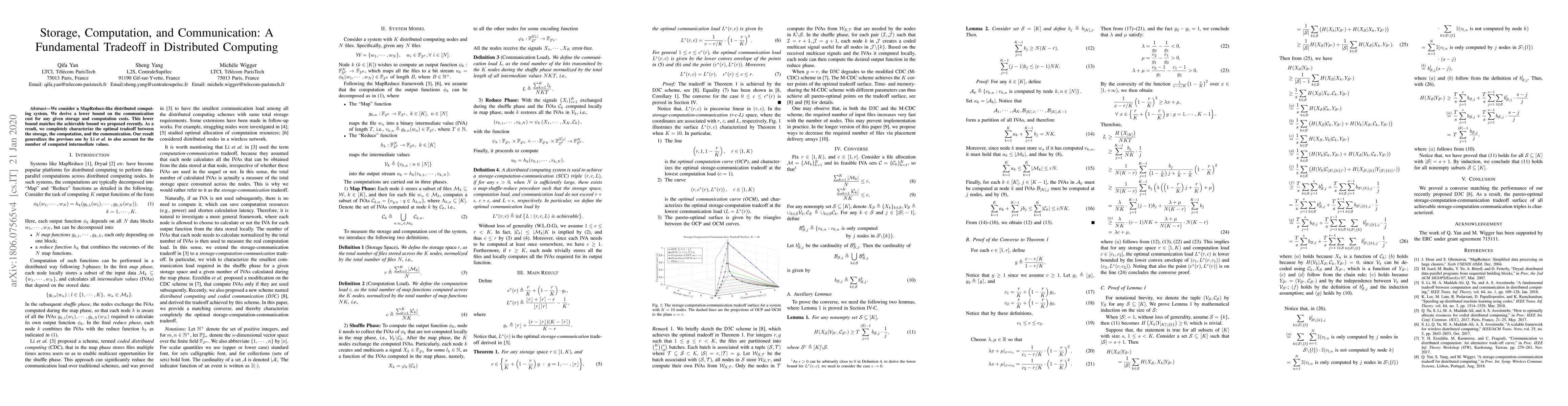 We consider a MapReduce-like distributed computing system. We derive a lower bound on the communication cost for any given storage and computation costs. This lower bound matches the achievable bound we proposed recently. As a result, we completely characterize the optimal tradeoff between the storage, the computation, and the communication. Our result generalizes the previous one by Li et al. to also account for the number of computed intermediate values.