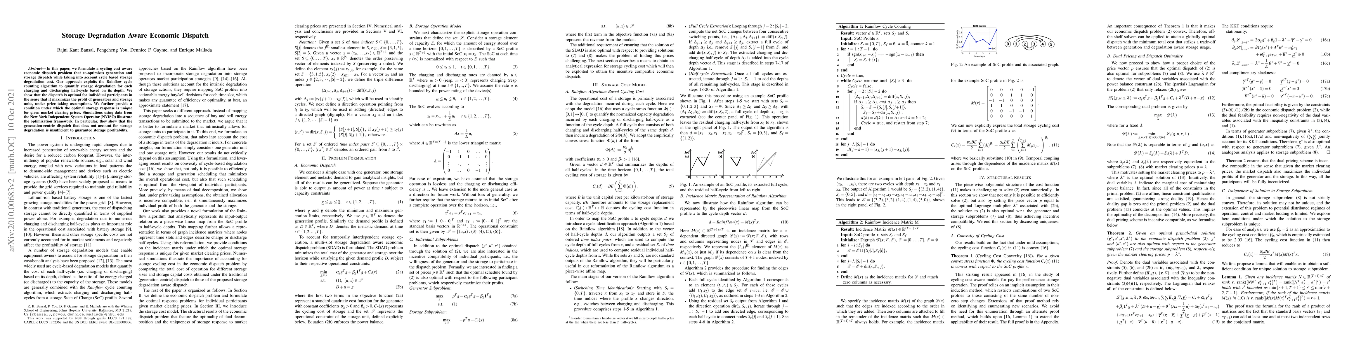 This paper proposes an economic dispatch model that optimizes generation and storage operations while considering cycle-based storage degradation costs. It uses the Rainflow cycle counting algorithm to quantify degradation and demonstrates that the proposed dispatch maximizes profits for generators and storage units, ensuring unique storage responses under certain market conditions. Simulations using NYISO data show that traditional generation-centric dispatch fails to ensure storage profitability.