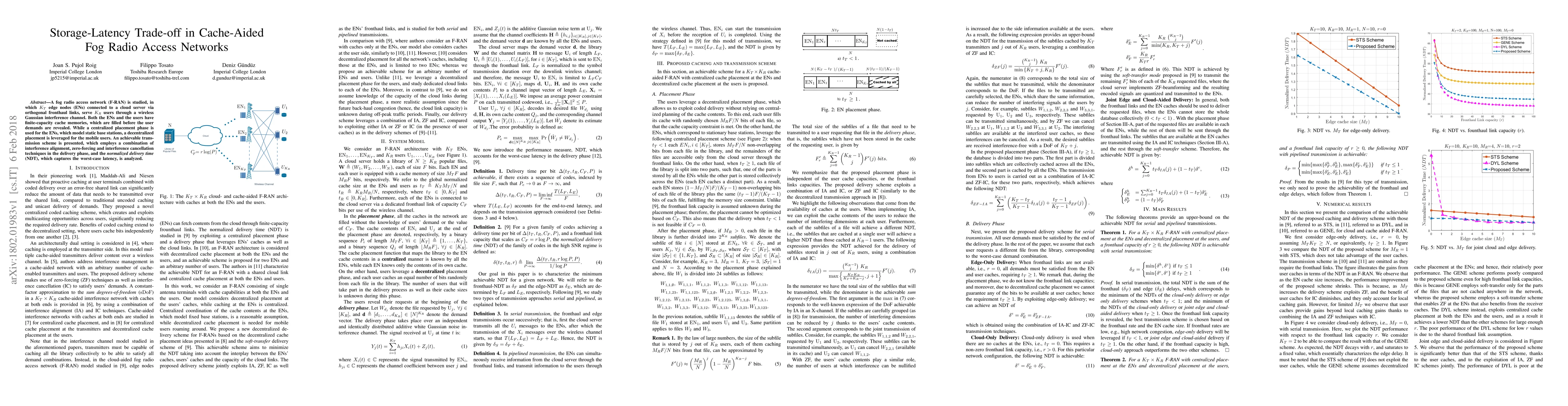 This paper investigates the storage-latency trade-off in cache-aided fog radio access networks (F-RAN), where edge nodes serve users via an interference channel. The study employs a combination of interference alignment, zero-forcing, and interference cancellation techniques to analyze the normalized delivery time, capturing the worst-case latency.