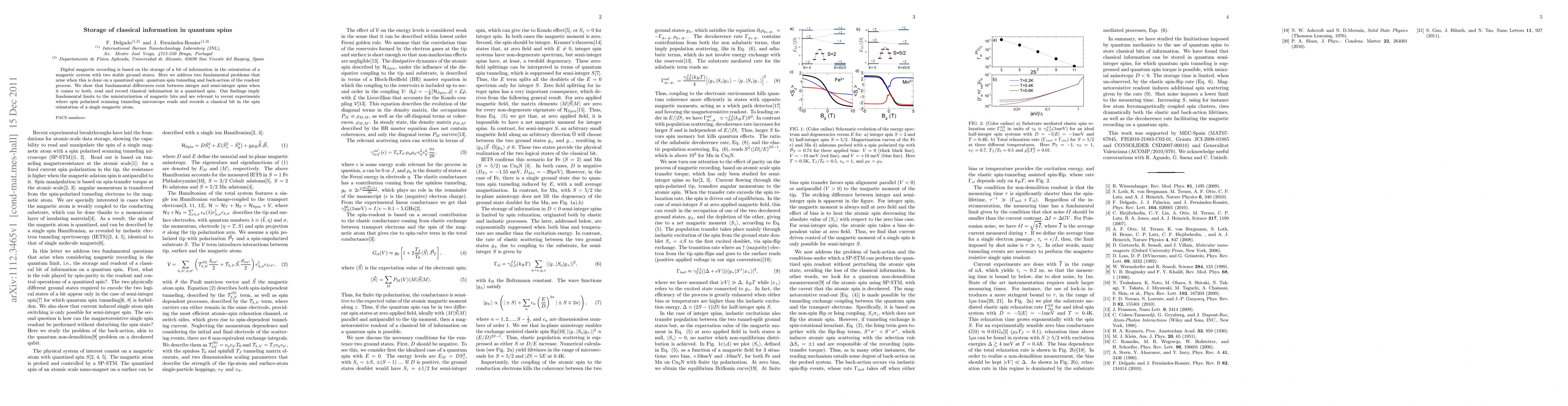 Digital magnetic recording is based on the storage of a bit of information in the orientation of a magnetic system with two stable ground states. Here we address two fundamental problems that arise when this is done on a quantized spin: quantum spin tunneling and back-action of the readout process. We show that fundamental differences exist between integer and semi-integer spins when it comes to both, read and record classical information in a quantized spin. Our findings imply fundamental limits to the miniaturization of magnetic bits and are relevant to recent experiments where spin polarized scanning tunneling microscope reads and records a classical bit in the spin orientation of a single magnetic atom.