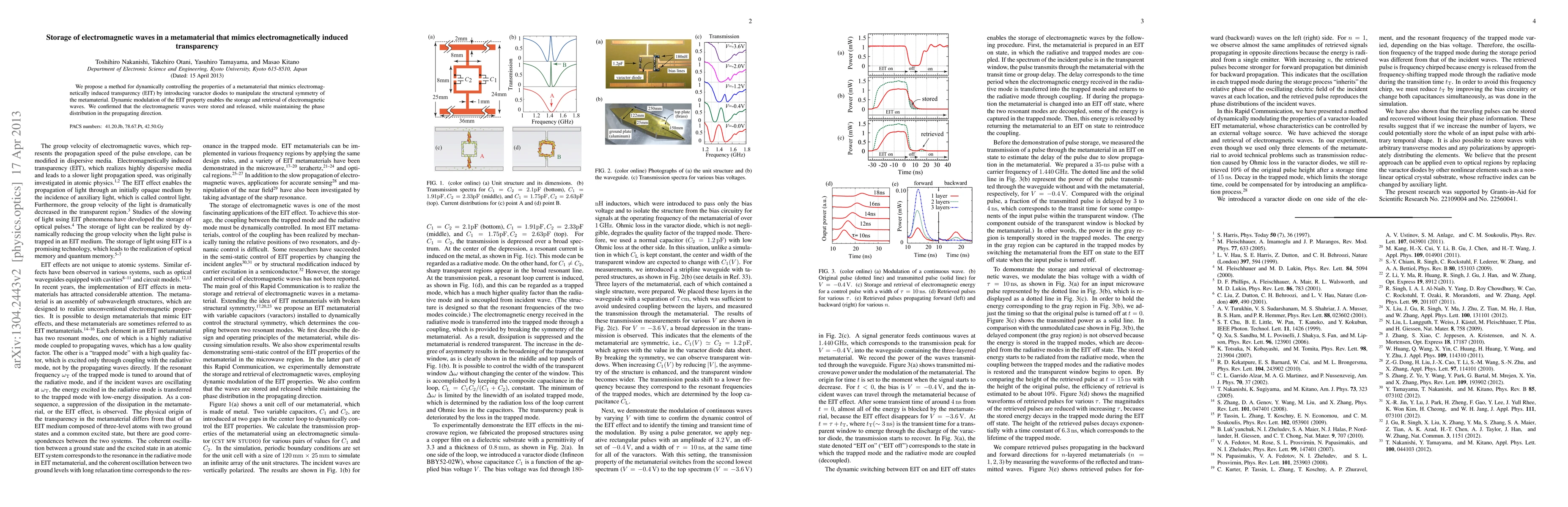 The paper proposes a method to dynamically control a metamaterial mimicking electromagnetically induced transparency (EIT) using varactor diodes for structural symmetry manipulation, enabling the storage and retrieval of electromagnetic waves while preserving phase distribution. Experimental confirmation of this dynamic modulation for wave storage and release is provided.