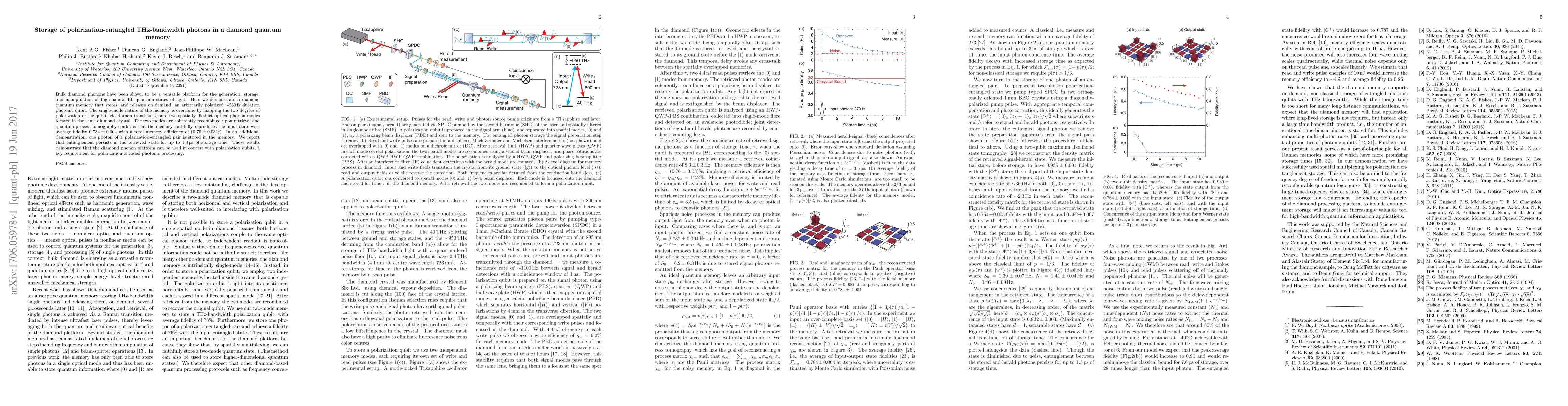 This paper demonstrates a diamond quantum memory that stores and retrieves high-bandwidth THz-photon qubits with fidelity, and shows that polarization-entangled states can be preserved for up to 1.3 ps, highlighting the potential of diamond phonons for photonic processing.