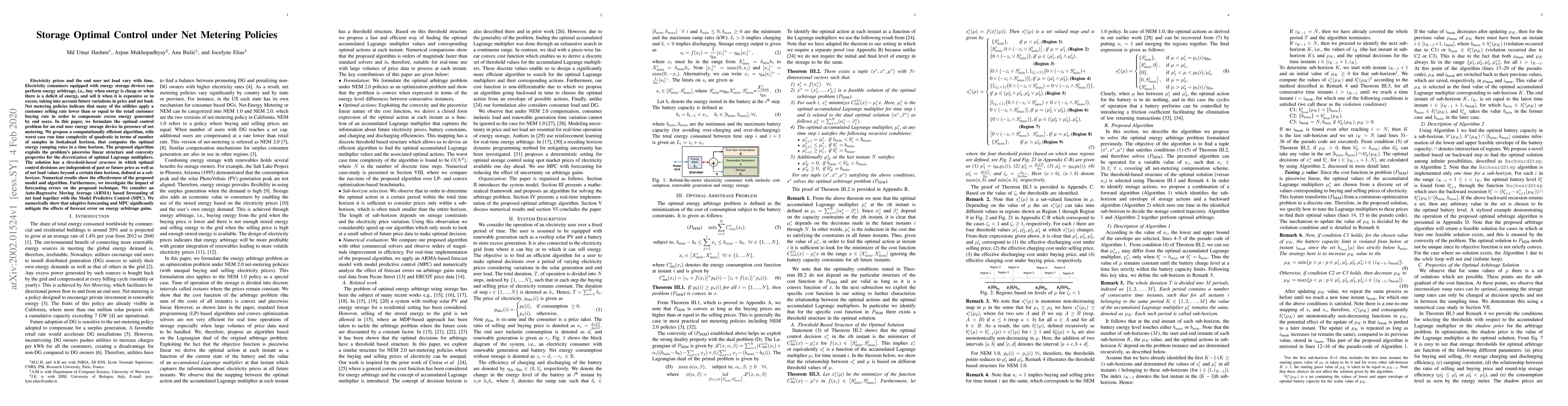 This paper formulates an optimal control problem for energy storage devices under net metering policies, proposing a computationally efficient algorithm to determine optimal energy ramping rates. The algorithm leverages the problem's convexity and piecewise linear structure, demonstrating effectiveness through numerical results and investigating the impact of forecasting errors, showing that adaptive forecasting and MPC can mitigate forecast error impacts.