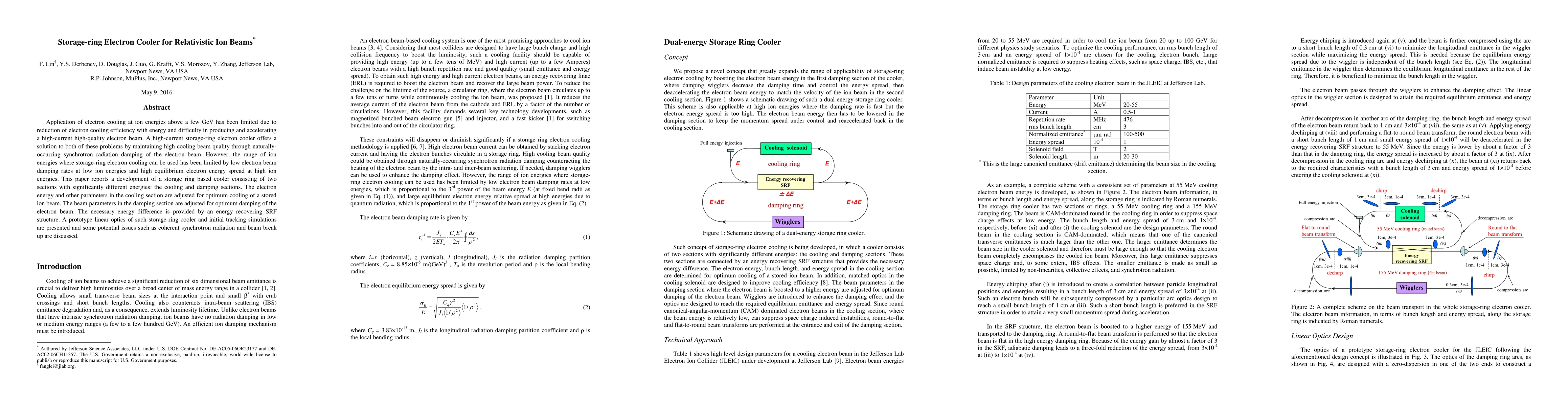 Application of electron cooling at ion energies above a few GeV has been limited due to reduction of electron cooling efficiency with energy and difficulty in producing and accelerating a high-current high-quality electron beam. A high-current storage-ring electron cooler offers a solution to both of these problems by maintaining high cooling beam quality through naturally-occurring synchrotron radiation damping of the electron beam. However, the range of ion energies where storage-ring electron cooling can be used has been limited by low electron beam damping rates at low ion energies and high equilibrium electron energy spread at high ion energies. This paper reports a development of a storage ring based cooler consisting of two sections with significantly different energies: the cooling and damping sections. The electron energy and other parameters in the cooling section are adjusted for optimum cooling of a stored ion beam. The beam parameters in the damping section are adjusted for optimum damping of the electron beam. The necessary energy difference is provided by an energy recovering SRF structure. A prototype linear optics of such storage-ring cooler and initial tracking simulations are presented and some potential issues such as coherent synchrotron radiation and beam break up are discussed.
