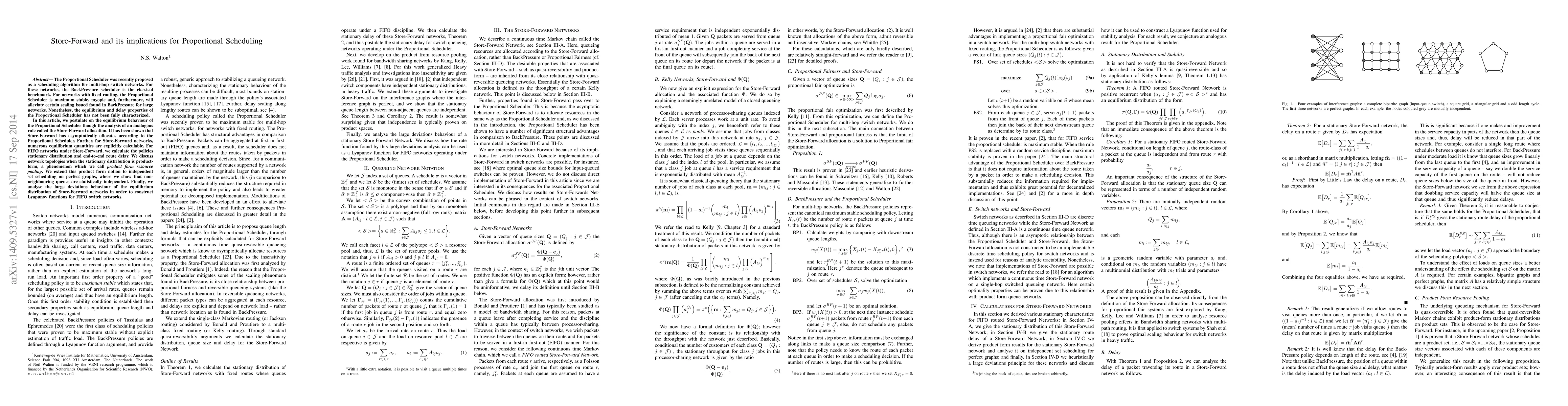 This paper investigates the Proportional Scheduler for multi-hop switch networks, comparing it to the BackPressure scheduler and analyzing its equilibrium properties through Store-Forward allocation. It finds that Store-Forward networks exhibit product form resource pooling, enabling explicit calculation of equilibrium quantities and large deviations behavior.