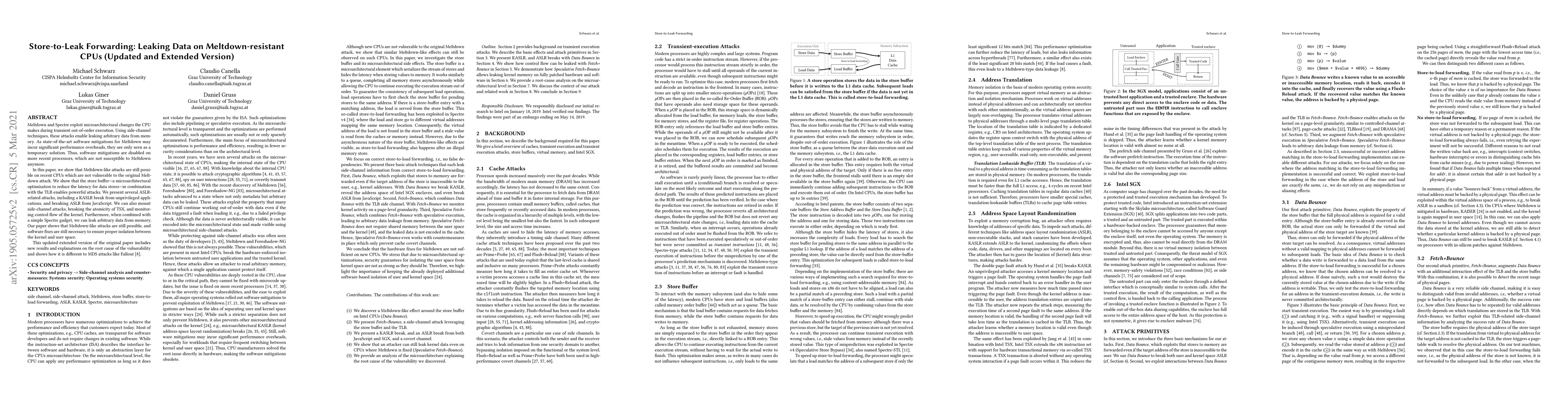 Meltdown and Spectre exploit microarchitectural changes the CPU makes during transient out-of-order execution. Using side-channel techniques, these attacks enable leaking arbitrary data from memory. As state-of-the-art software mitigations for Meltdown may incur significant performance overheads, they are only seen as a temporary solution. Thus, software mitigations are disabled on more recent processors, which are not susceptible to Meltdown anymore. In this paper, we show that Meltdown-like attacks are still possible on recent CPUs which are not vulnerable to the original Meltdown attack. We show that the store buffer - a microarchitectural optimization to reduce the latency for data stores - in combination with the TLB enables powerful attacks. We present several ASLRrelated attacks, including a KASLR break from unprivileged applications, and breaking ASLR from JavaScript. We can also mount side-channel attacks, breaking the atomicity of TSX, and monitoring control flow of the kernel. Furthermore, when combined with a simple Spectre gadget, we can leak arbitrary data from memory. Our paper shows that Meltdown-like attacks are still possible, and software fixes are still necessary to ensure proper isolation between the kernel and user space. This updated extended version of the original paper includes new results and explanations on the root cause of the vulnerability and shows how it is different to MDS attacks like Fallout.