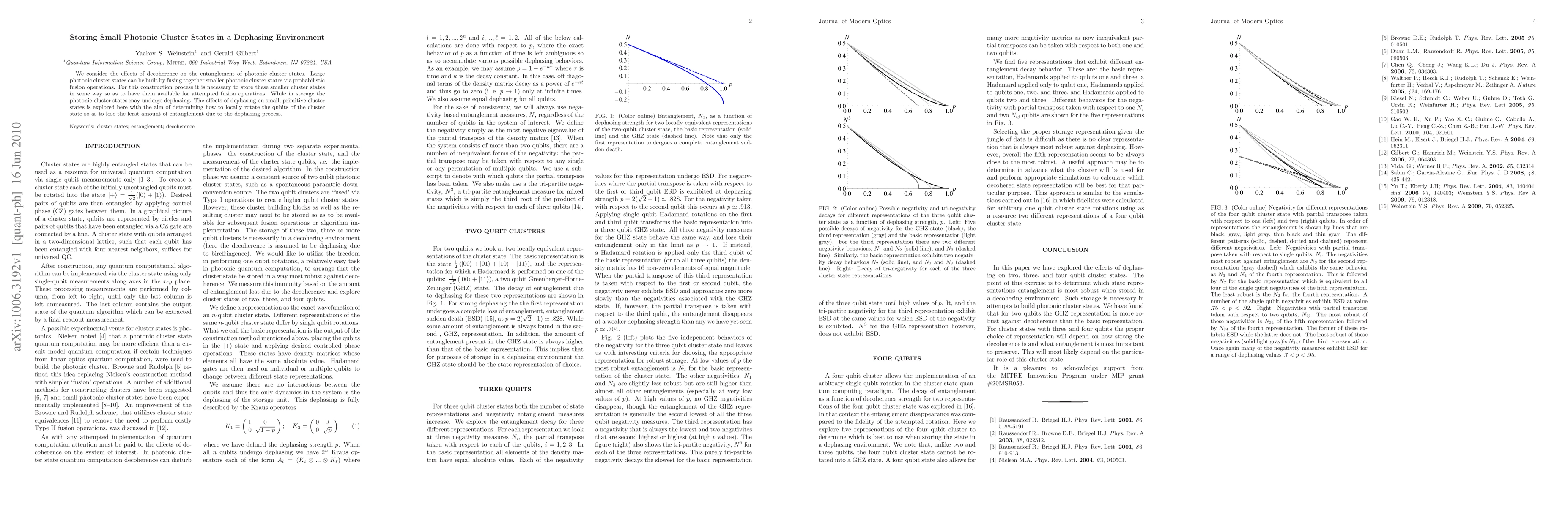 This paper investigates the impact of decoherence on the entanglement of photonic cluster states, focusing on how dephasing affects small, primitive cluster states during storage. The study aims to find local qubit rotations that minimize entanglement loss during the dephasing process, crucial for constructing larger cluster states via fusion operations.