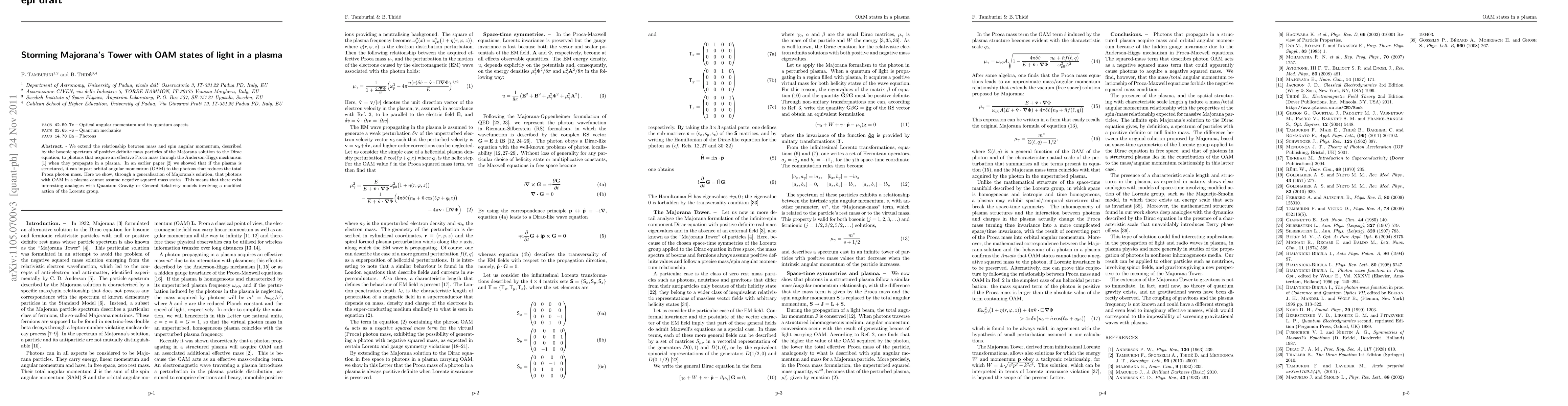 This research extends the Majorana solution for massive particles to photons in a plasma, demonstrating that orbital angular momentum (OAM) states of light can reduce the effective Proca mass. It further shows that photons with OAM cannot have negative mass squared, suggesting parallels with Quantum Gravity models.