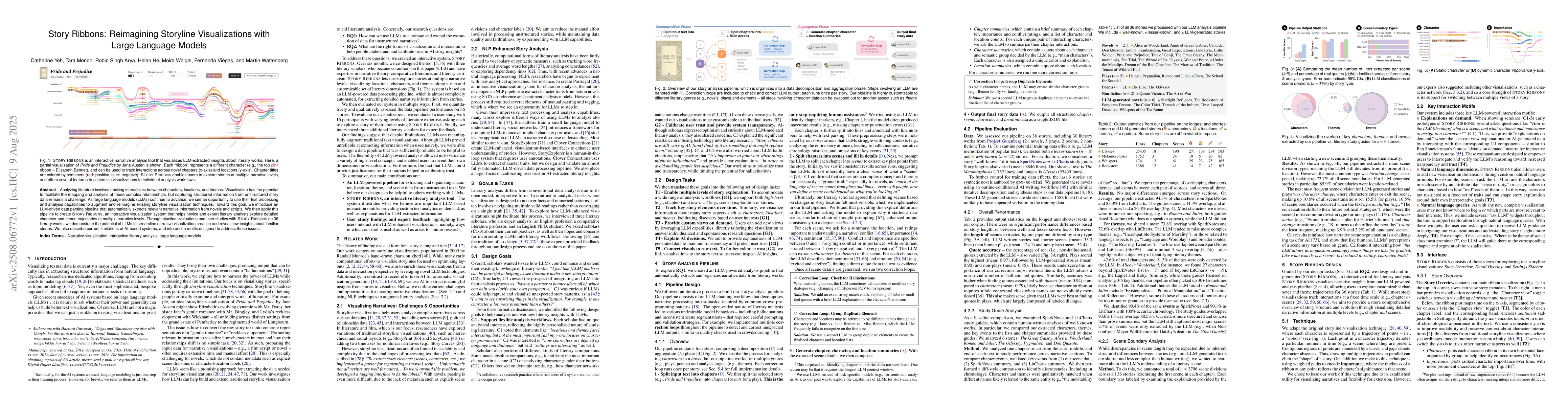 The paper introduces Story Ribbons, an interactive visualization system that leverages large language models to extract and visualize narrative insights from literary works.