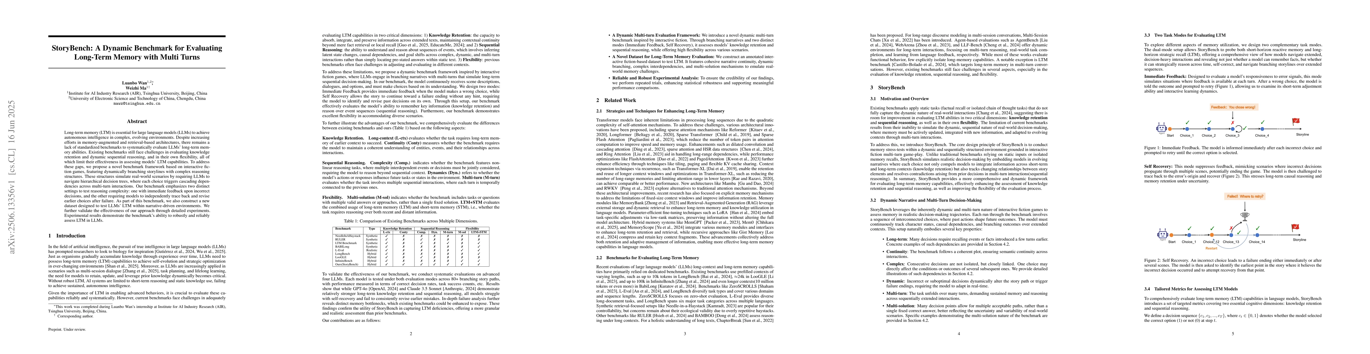 Long-term memory (LTM) is essential for large language models (LLMs) to achieve autonomous intelligence in complex, evolving environments. Despite increasing efforts in memory-augmented and retrieval-based architectures, there remains a lack of standardized benchmarks to systematically evaluate LLMs' long-term memory abilities. Existing benchmarks still face challenges in evaluating knowledge retention and dynamic sequential reasoning, and in their own flexibility, all of which limit their effectiveness in assessing models' LTM capabilities. To address these gaps, we propose a novel benchmark framework based on interactive fiction games, featuring dynamically branching storylines with complex reasoning structures. These structures simulate real-world scenarios by requiring LLMs to navigate hierarchical decision trees, where each choice triggers cascading dependencies across multi-turn interactions. Our benchmark emphasizes two distinct settings to test reasoning complexity: one with immediate feedback upon incorrect decisions, and the other requiring models to independently trace back and revise earlier choices after failure. As part of this benchmark, we also construct a new dataset designed to test LLMs' LTM within narrative-driven environments. We further validate the effectiveness of our approach through detailed experiments. Experimental results demonstrate the benchmark's ability to robustly and reliably assess LTM in LLMs.