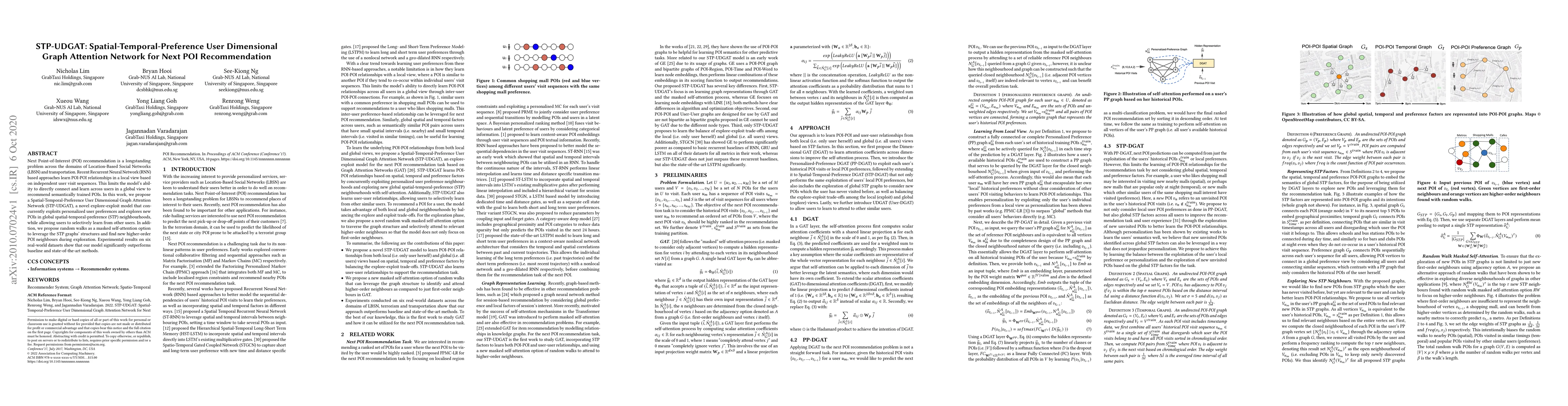 The STP-UDGAT network proposes a novel graph attention model for next POI recommendation, combining spatial, temporal, and preference factors to explore and exploit user preferences and new POIs globally. It outperforms existing methods on six datasets, demonstrating its effectiveness in enhancing POI recommendations.
