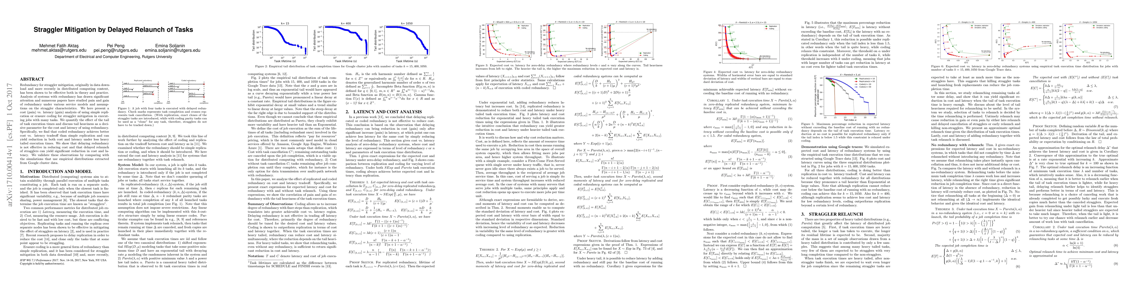 Redundancy for straggler mitigation, originally in data download and more recently in distributed computing context, has been shown to be effective both in theory and practice. Analysis of systems with redundancy has drawn significant attention and numerous papers have studied pain and gain of redundancy under various service models and assumptions on the straggler characteristics. We here present a cost (pain) vs. latency (gain) analysis of using simple replication or erasure coding for straggler mitigation in executing jobs with many tasks. We quantify the effect of the tail of task execution times and discuss tail heaviness as a decisive parameter for the cost and latency of using redundancy. Specifically, we find that coded redundancy achieves better cost vs. latency tradeoff than simple replication and can yield reduction in both cost and latency under less heavy tailed execution times. We show that delaying redundancy is not effective in reducing cost and that delayed relaunch of stragglers can yield significant reduction in cost and latency. We validate these observations by comparing with the simulations that use empirical distributions extracted from Google cluster data.