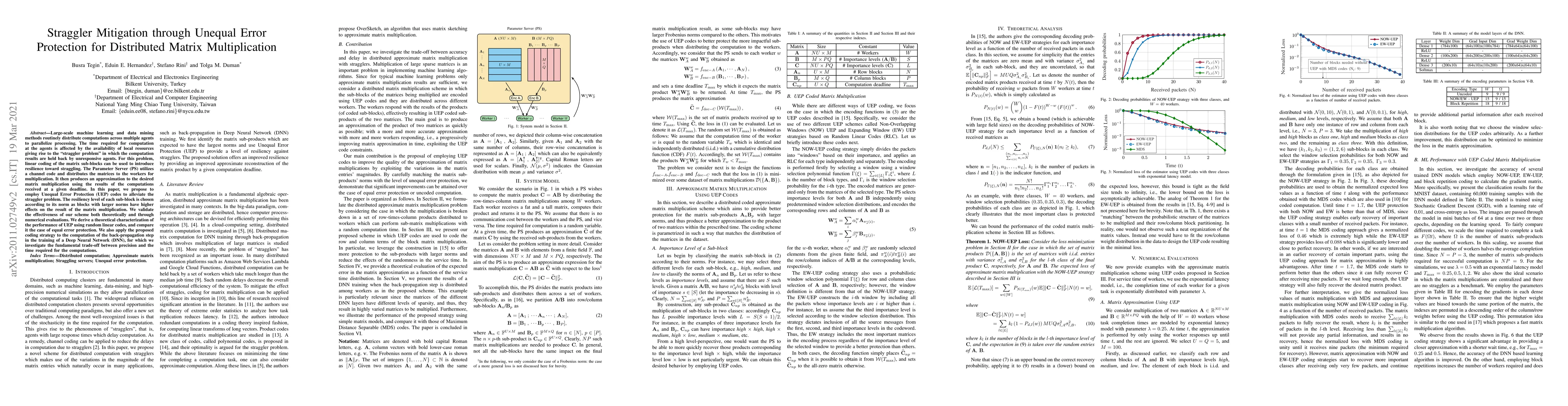 This paper proposes using Unequal Error Protection (UEP) codes to mitigate the "straggler problem" in distributed matrix multiplication, where computation delays by some agents hold back results. The method assigns higher resiliency levels to more significant matrix sub-blocks, validated through theoretical and numerical evaluations, and applied to DNN training.