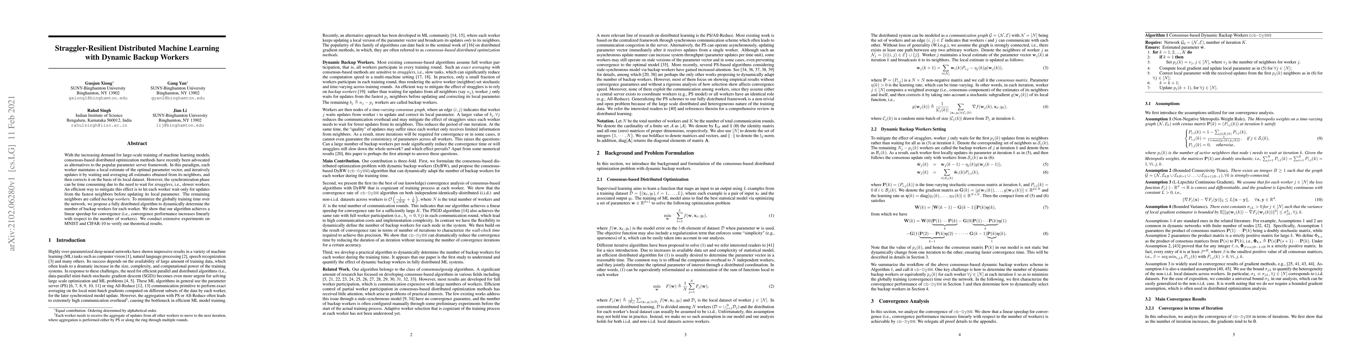 This research paper proposes a new algorithm for distributed machine learning that dynamically determines the number of backup workers to speed up convergence, achieving a linear speedup in training time with more workers.
